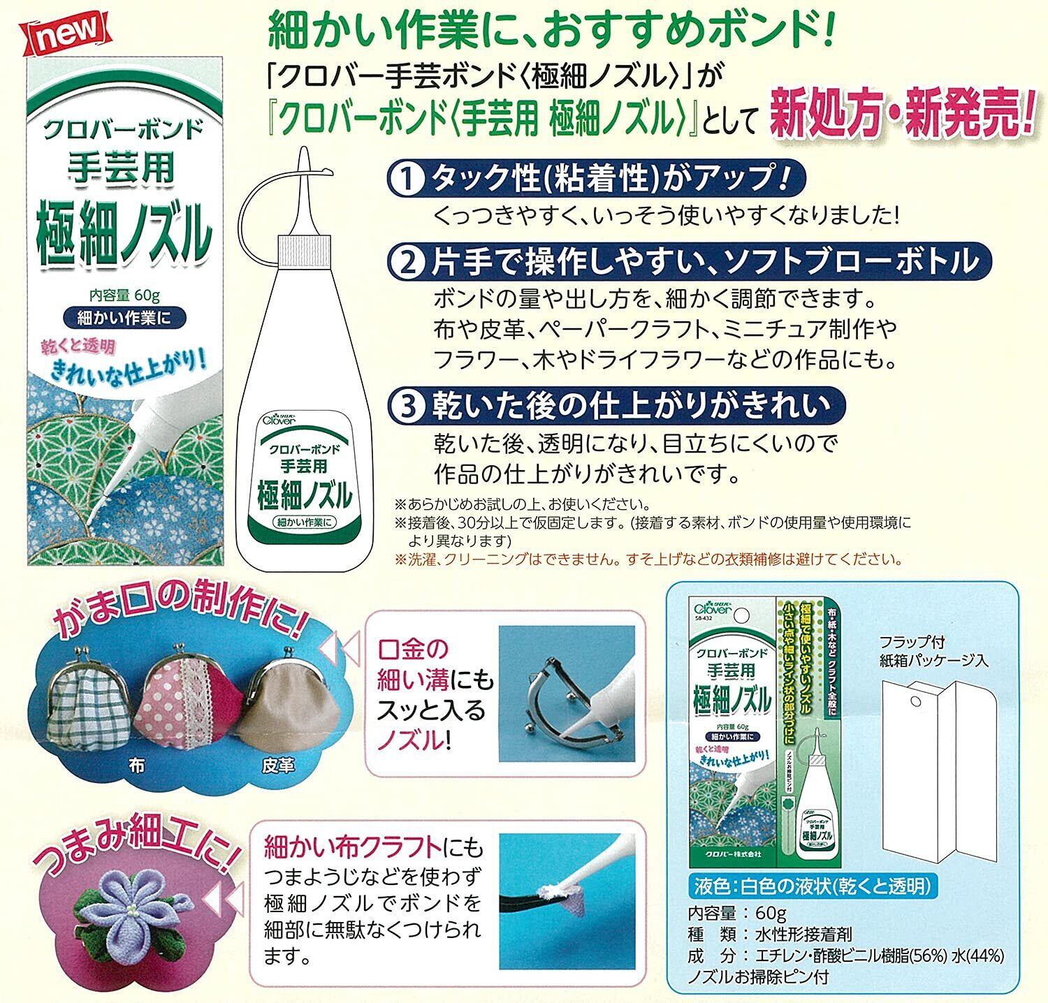 【在庫のみ】クロバー(Clover) ボンド 手芸用 極細ノズル 60g CL58-432 透明