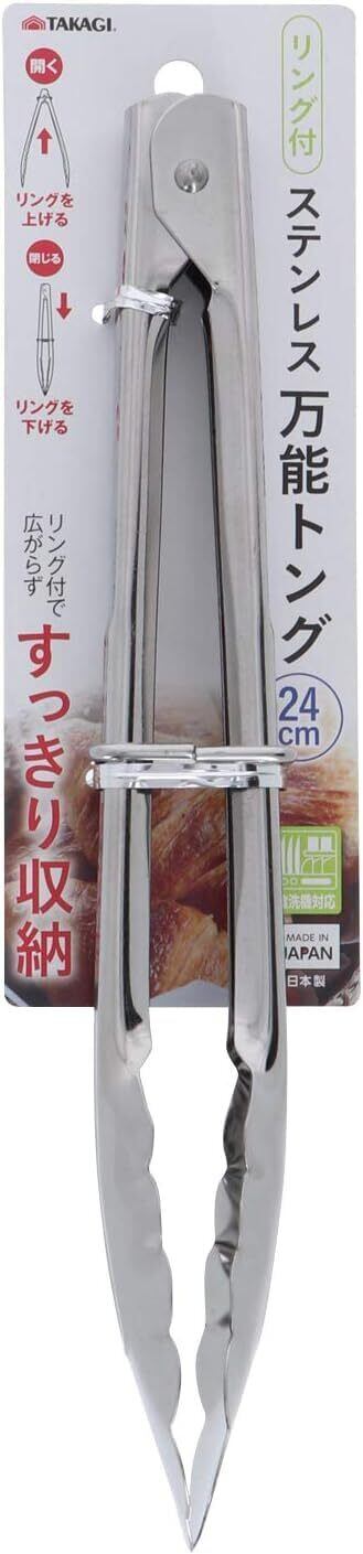 髙儀(Takagi) リング付ステンレス万能トング 240mm 日本製 高儀 たかぎ TAKAGI サイズ:3.4×24×3cm 材質:ステンレス鋼 食器洗浄機対応 生産国:日本 サラダの取り分けに パンの取り分けに パスタの盛り付けに リング付で広がらずすっきり収納 リングを上げて開く、リングを下げて閉じる 食器洗浄機対応 日本製