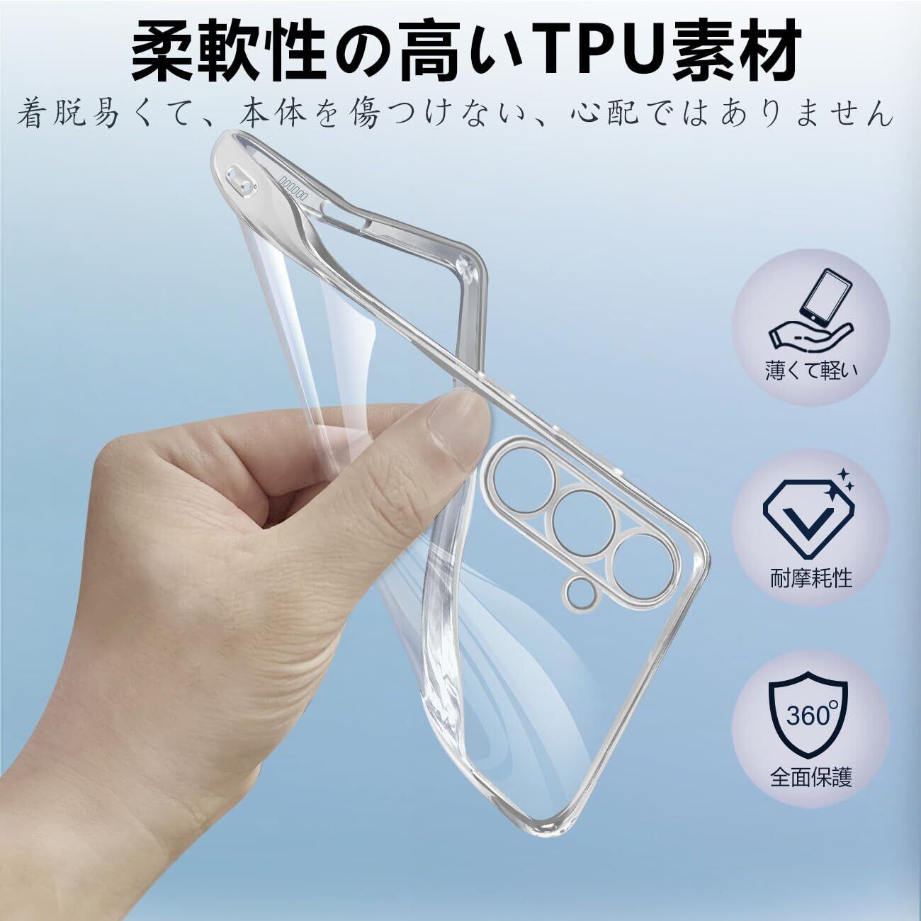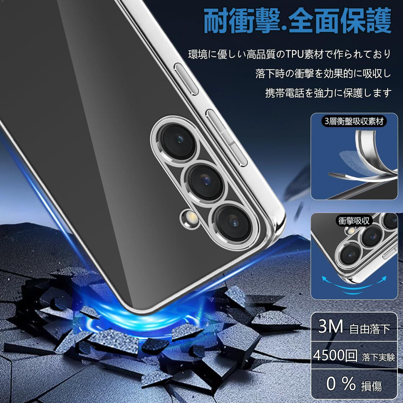 【高品質素材&精密設計】本製品は高品質のTPU素材を採用し、Samsung Galaxy S23FE のボディデザインに完璧にフィット。大切な 携帯電話を落下時の衝撃や傷など、あらゆるダメージからしっかりと守ります。スマホとぴったりフィットします、ケースを付けても接続端子やイヤホン、サイド側ボタンなどスムーズに操作できます。