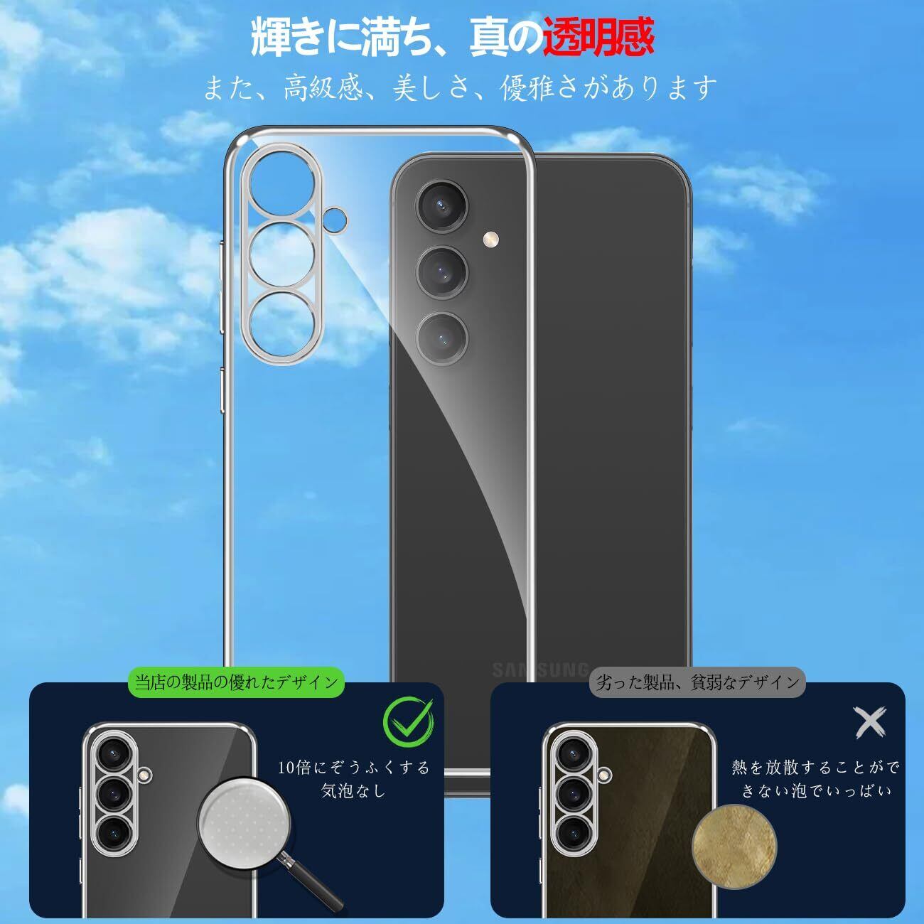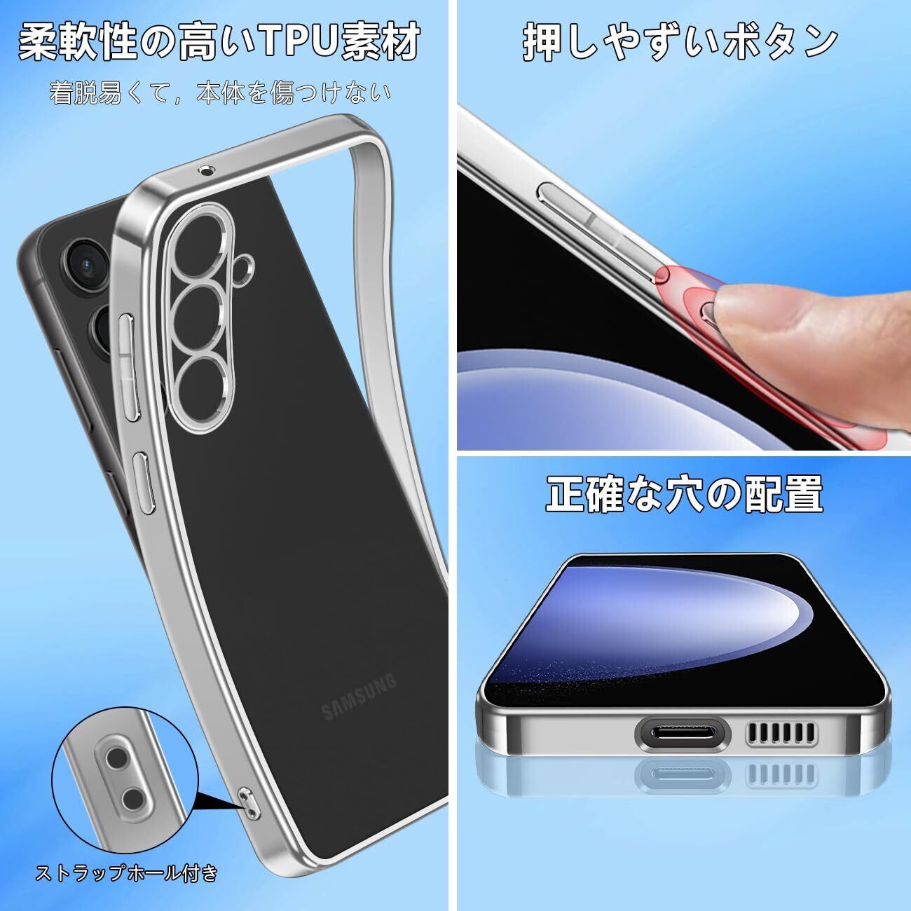 【新着特価】【FULEEYUHN】Samsung Galaxy S23FE ケース クリア ギャラクシー S23FE カバー 透明 TPU素材 耐衝撃 薄型 軽量 SCG24 対応 韓国 ファッション スマホケース メッキ加工 黄変防止 人気 ストラップホール付き ワイヤレス充電対応(シルバー)