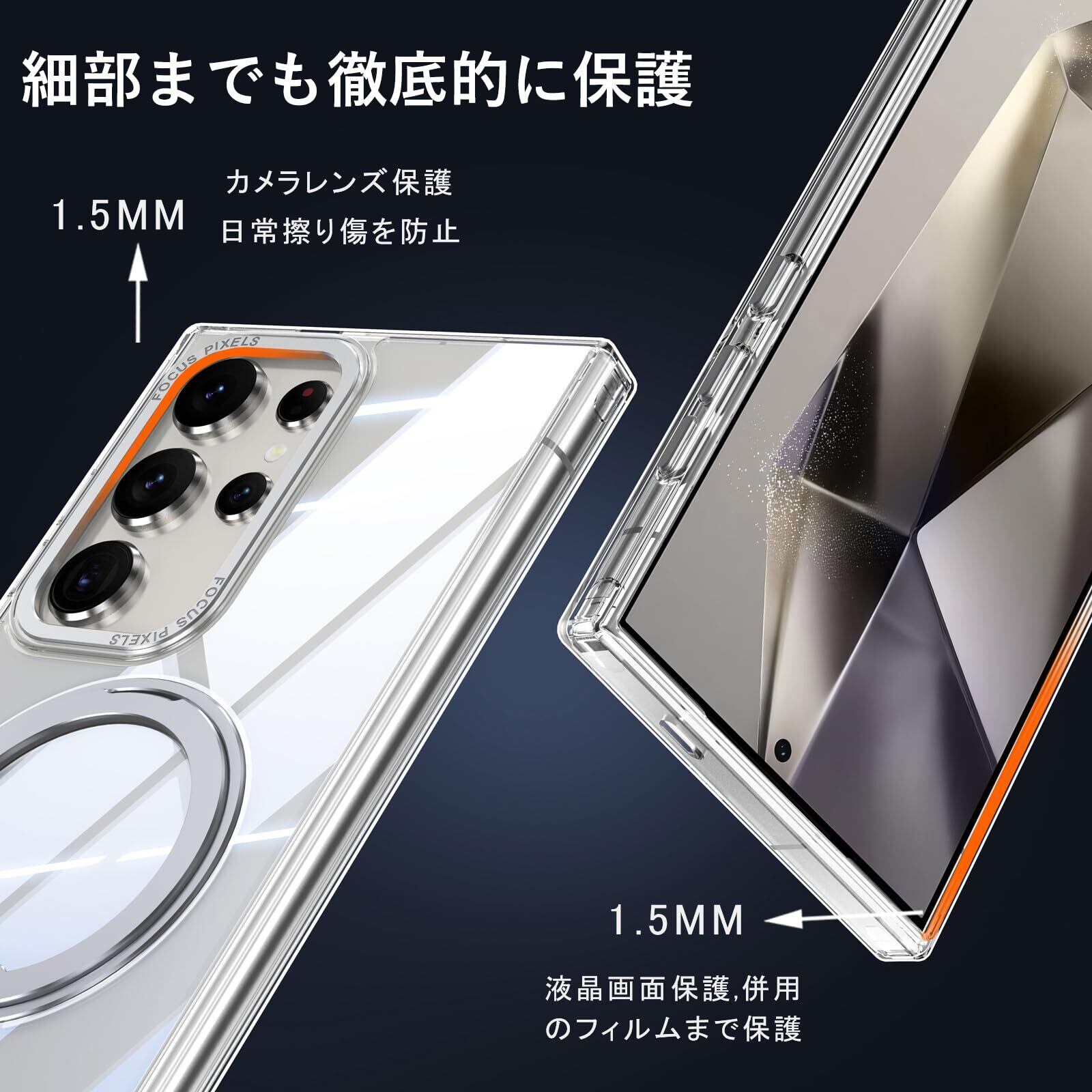 Samsung Galaxy S23 Ultra 用 ケース Magsafe対応 ギャラクシーS23ウルトラ / docomo SC-52D / au SCG20 カバー 360°回転スタンド Uovon スマホケース 携帯ケース ワイヤレス充電 車載ホルダー 対応 ストラップ穴付き 半透明 指紋防止 黄?防止 ・ クリア