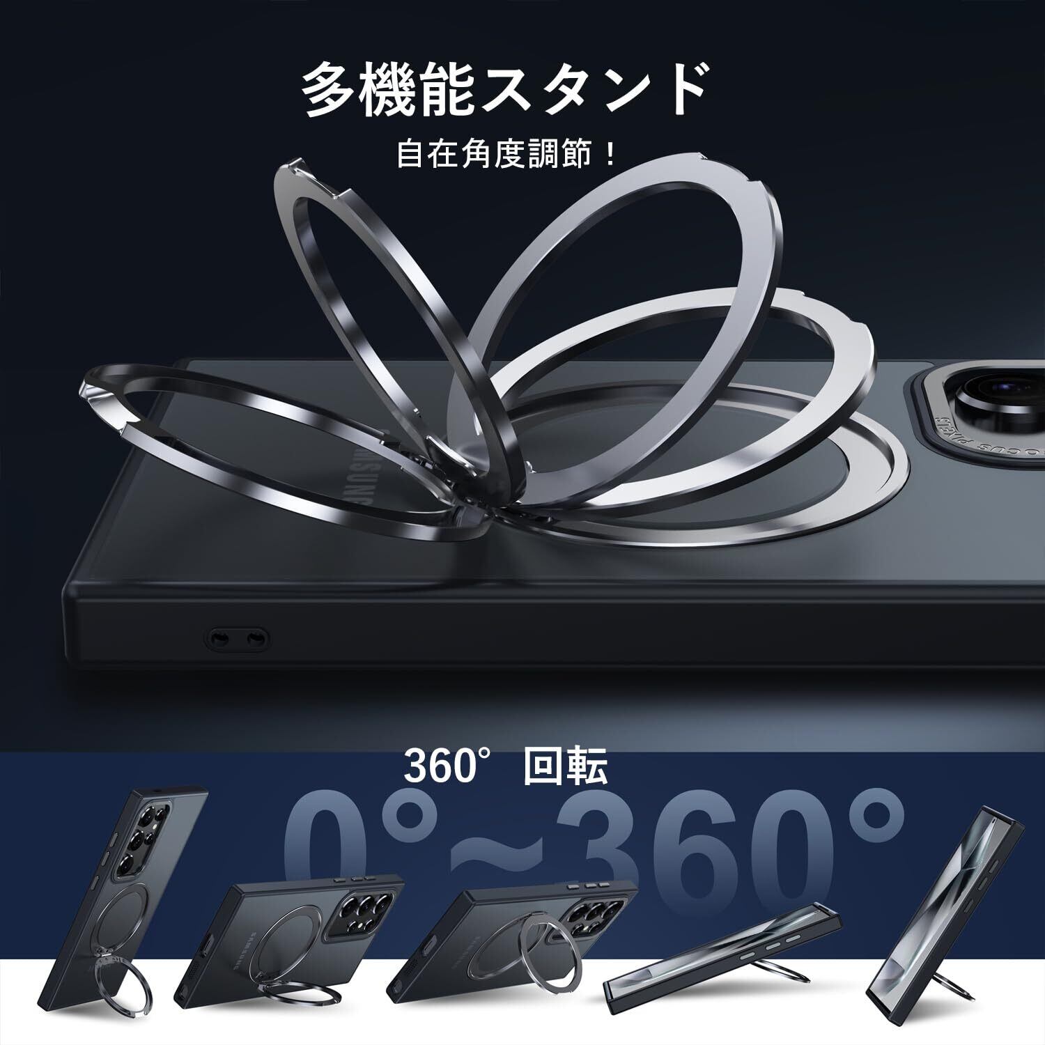 Samsung Galaxy S23 Ultra 用 ケース Magsafe対応 ギャラクシーS23ウルトラ / docomo SC-52D / au SCG20 カバー 360°回転スタンド Uovon スマホケース 携帯ケース ワイヤレス充電 車載ホルダー 対応 ストラップ穴付き 半透明 指紋防止 黄?防止 ・ ブラック