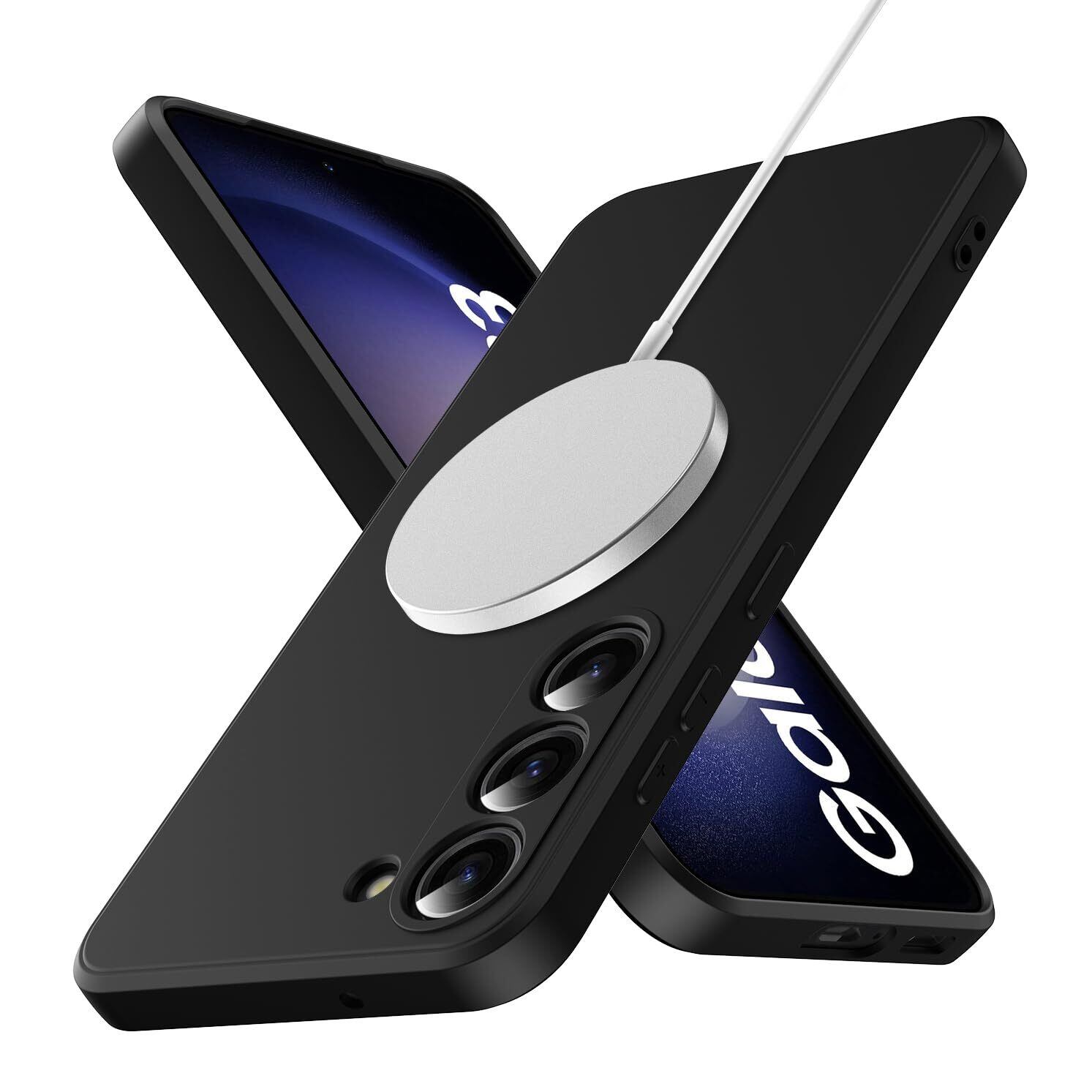 Galaxy S23 用 ケース マグネット搭載 耐衝撃 薄型 シリコン Magnetic スリム 薄い スマホケース トラップホール付き ワイヤレス充電 軽量 手触り良い 指紋防止 サムスン ギャラクシーS23 対応 (黒) 24-s23-01