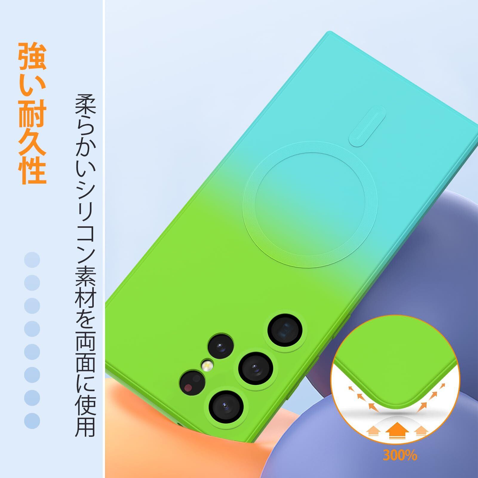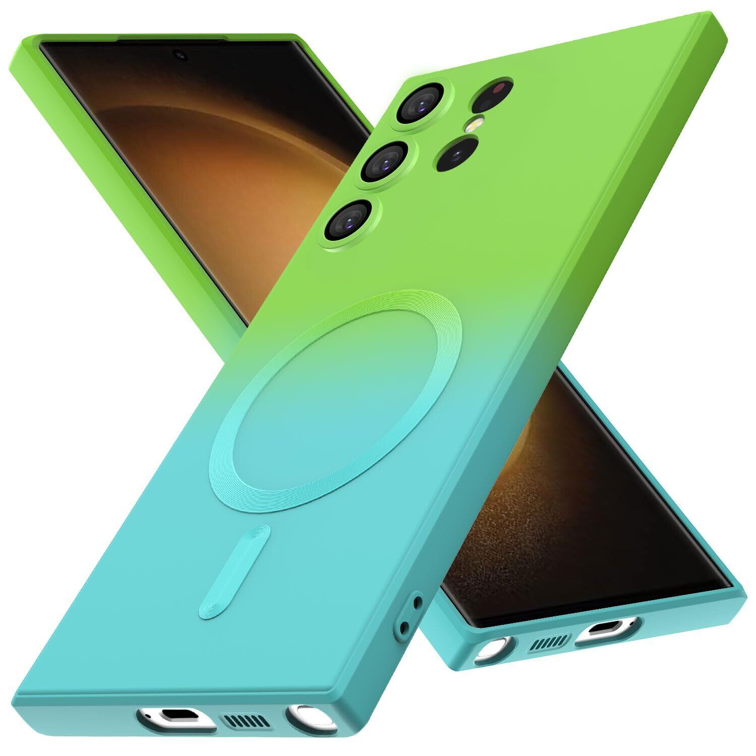 Galaxy S23 Ultra ケース TPU 薄型 軽量 ケース 耐衝撃 マグネット搭載 ストラップホール付き スマホケース シリコン 背面ワイヤレス充電 黄変防止 すり傷防止 マグセーフ対応 人気 ギャラクシーS23ウルトラ カバー 6.8インチ グリーン/ブルー AYS-25-5