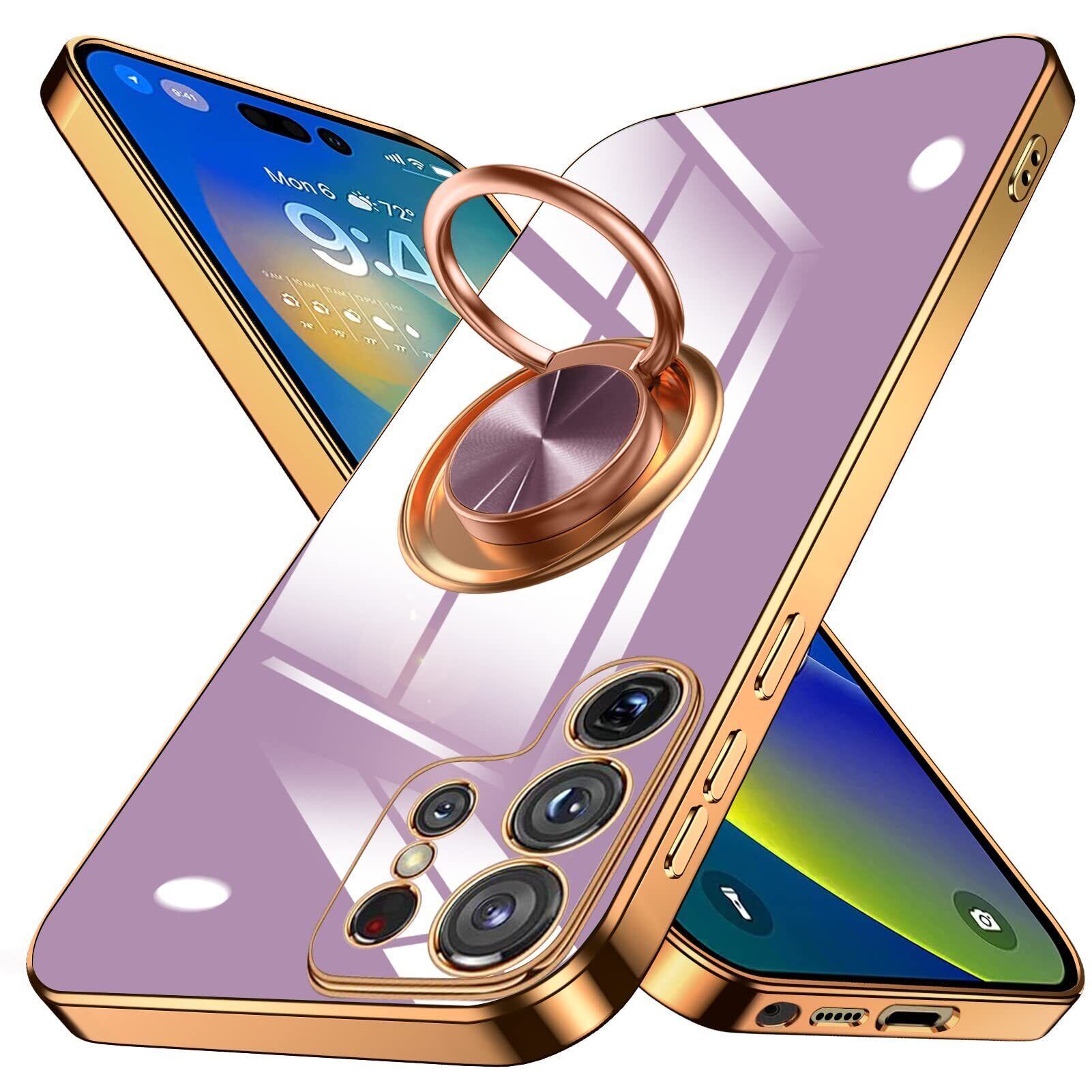 Galaxy S23 Ultra ケース リング付き 耐衝撃 落下衝撃吸収 tpu シリコン 軽量 薄型 メッキ加工 ストラップホール付き サムスン ギャラクシー S23 ultra ケース 全面保護 スタンド機能 車載ホルダー対応 360°回転 耐久 落下防止 人気 携帯カバー 紫 ZW70-20