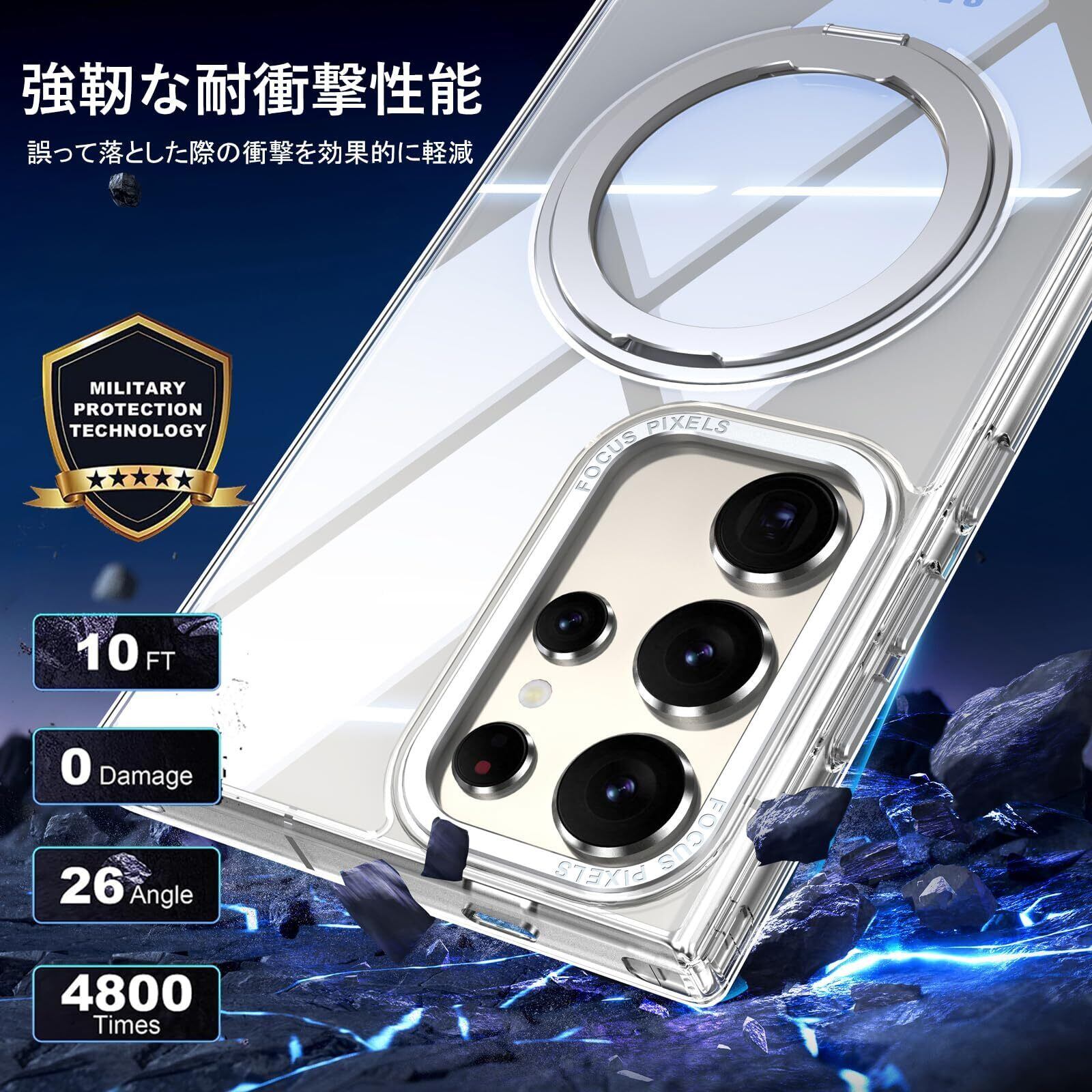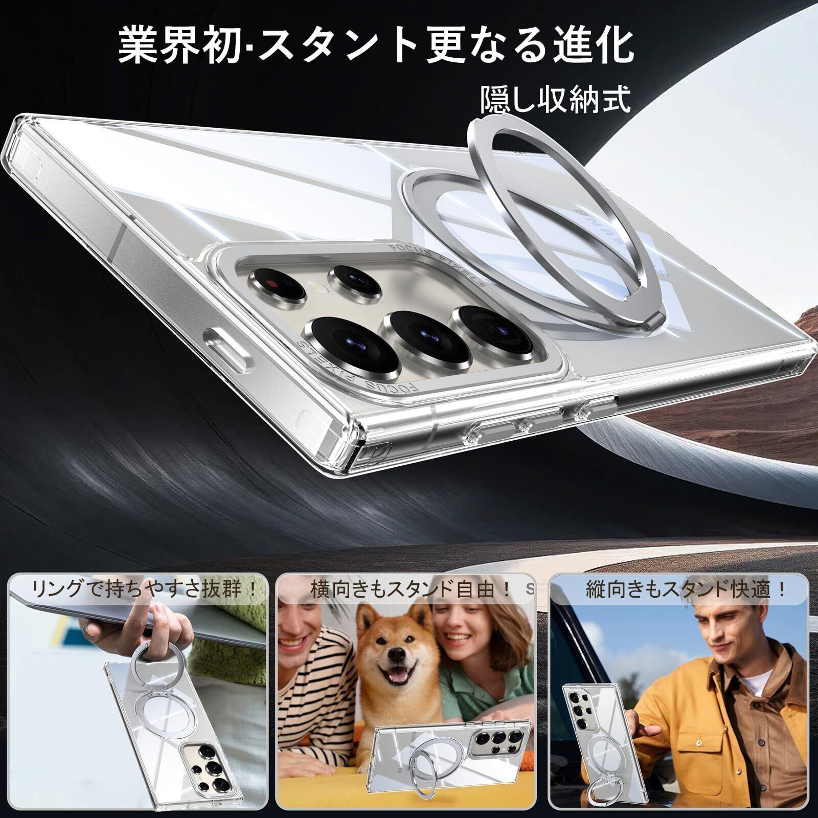 Galaxy S24 Ultra 用 ケース Magsafe対応 ギャラクシーs24ウルトラ / docomo SC-52E / au SCG26 カバー 360°回転スタンド Uovon スマホケース 携帯ケース ワイヤレス充電 車載ホルダー 対応 ストラップ穴付き 半透明 指紋防止 黄?防止 ・ クリア