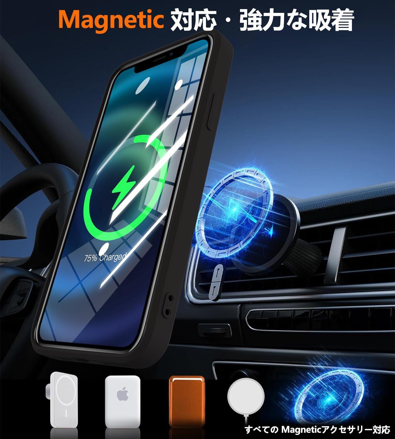 【Magnetic対応】このケースは強力な磁気に属する製品で、強い磁力を持ち、磁気をしっかり吸着するワイヤレス充電、磁気の財布、磁気の車載などの上にあります(これらは持参が必要で、当店ではケースしか販売していません)、落とす心配がなく、使うのに支障がなく、本当に嬉しい商品です