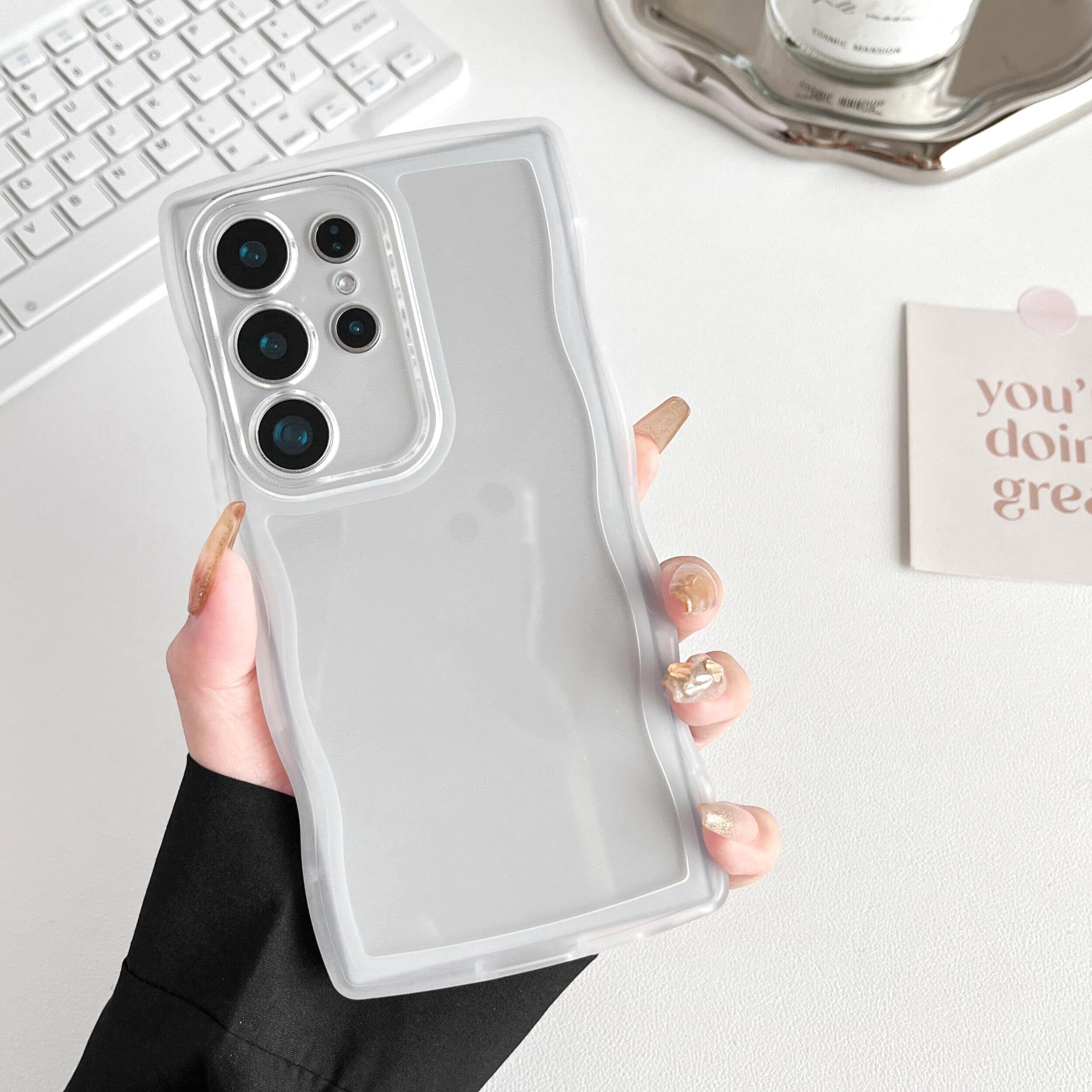 [ かわいい波枠 ] これはギャラクシーS24 Ultraケース用のクリアユニークな境界デザインで。かわいい波状のボーダーが指にフィットし、摩擦が高まります。明るい色を追加して、携帯電話をよりファッショナブルで目を引くようにします。ファッションと実用性の完璧な組み合わせ。