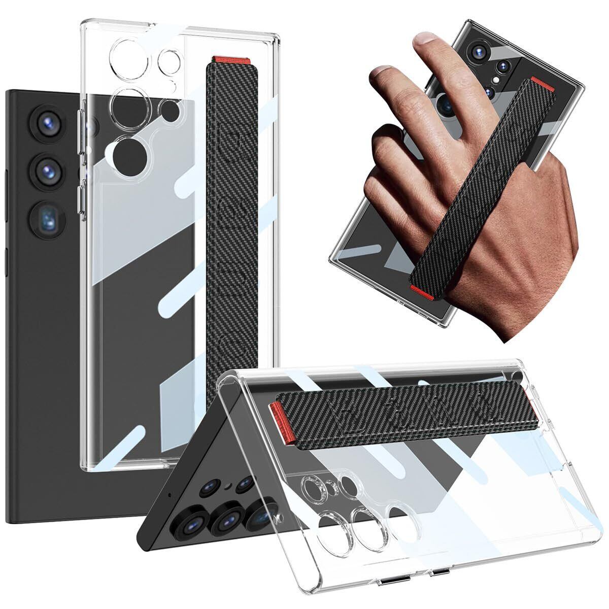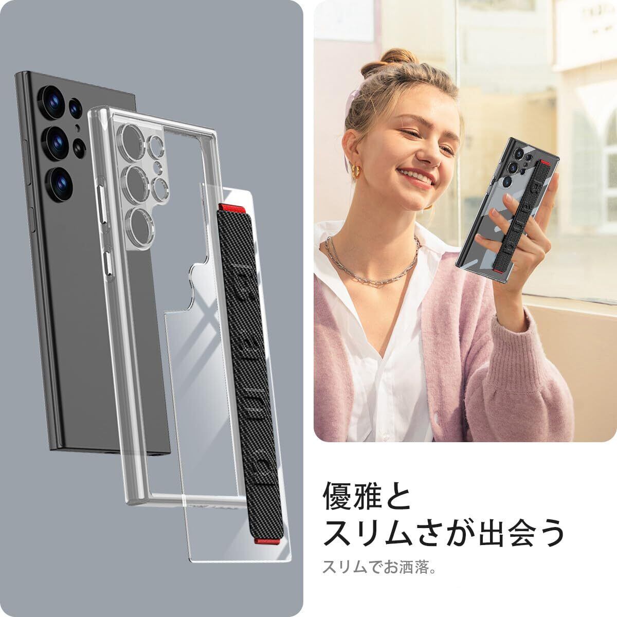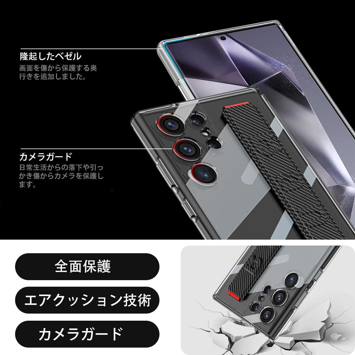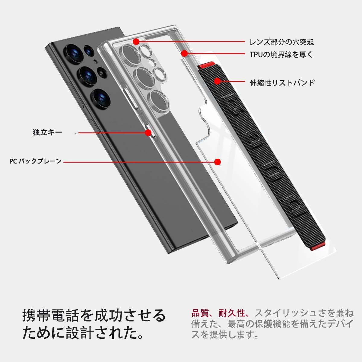 【特価処分】Miimall 対応Samsung Galaxy S24 Ultra用ケース PC素材 炭素粒 リストバンド付き 衝撃吸収 ワイヤレス充電対応 Galaxy S24 Ultra カバー クリア 落下防止 カメラ保護 耐久性 擦り傷防止 ギャラクシー S24 ウルトラと互換性ありカバー (ブラック)