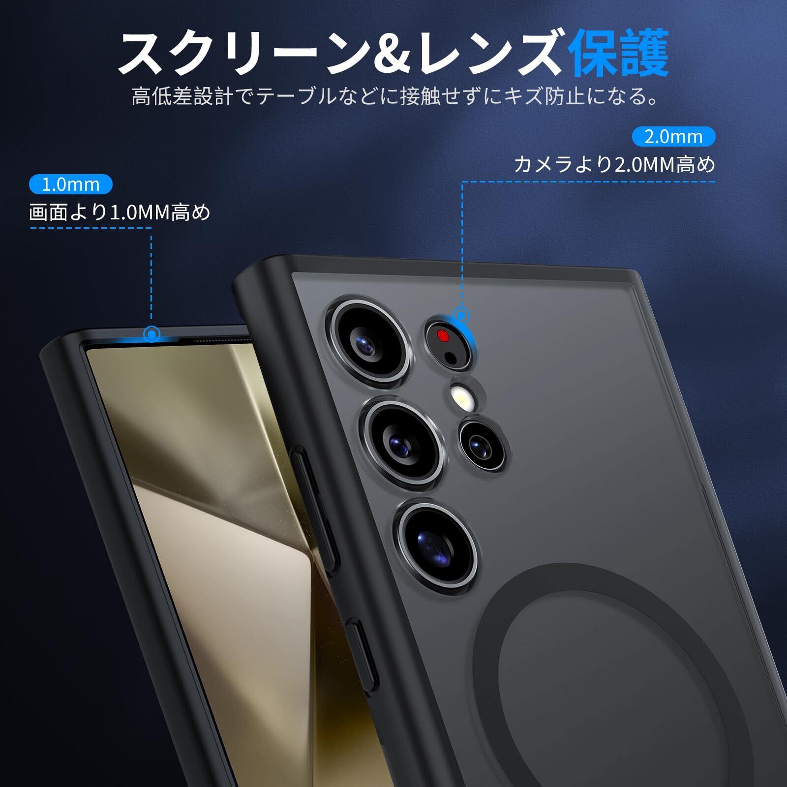 Aunote Galaxy S24 Ultra ケース Magsafeに対応 SC-52E / SCG26 マグネット搭載 ワイヤレス充電 米軍MIL規格 耐衝撃 耐久性 全面保護 黄ばみなし 指紋防止 マット半透明 ギャラクシー S24 ウルトラ カバー(ブラック)