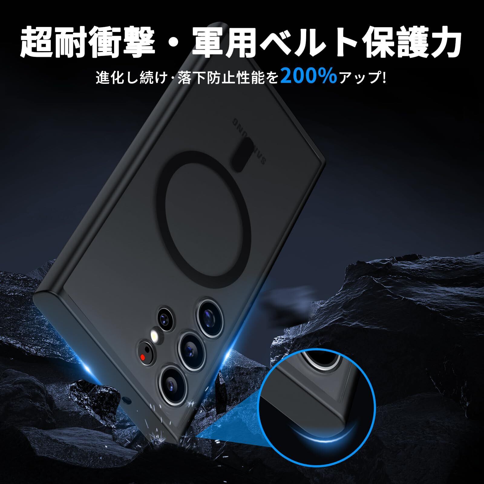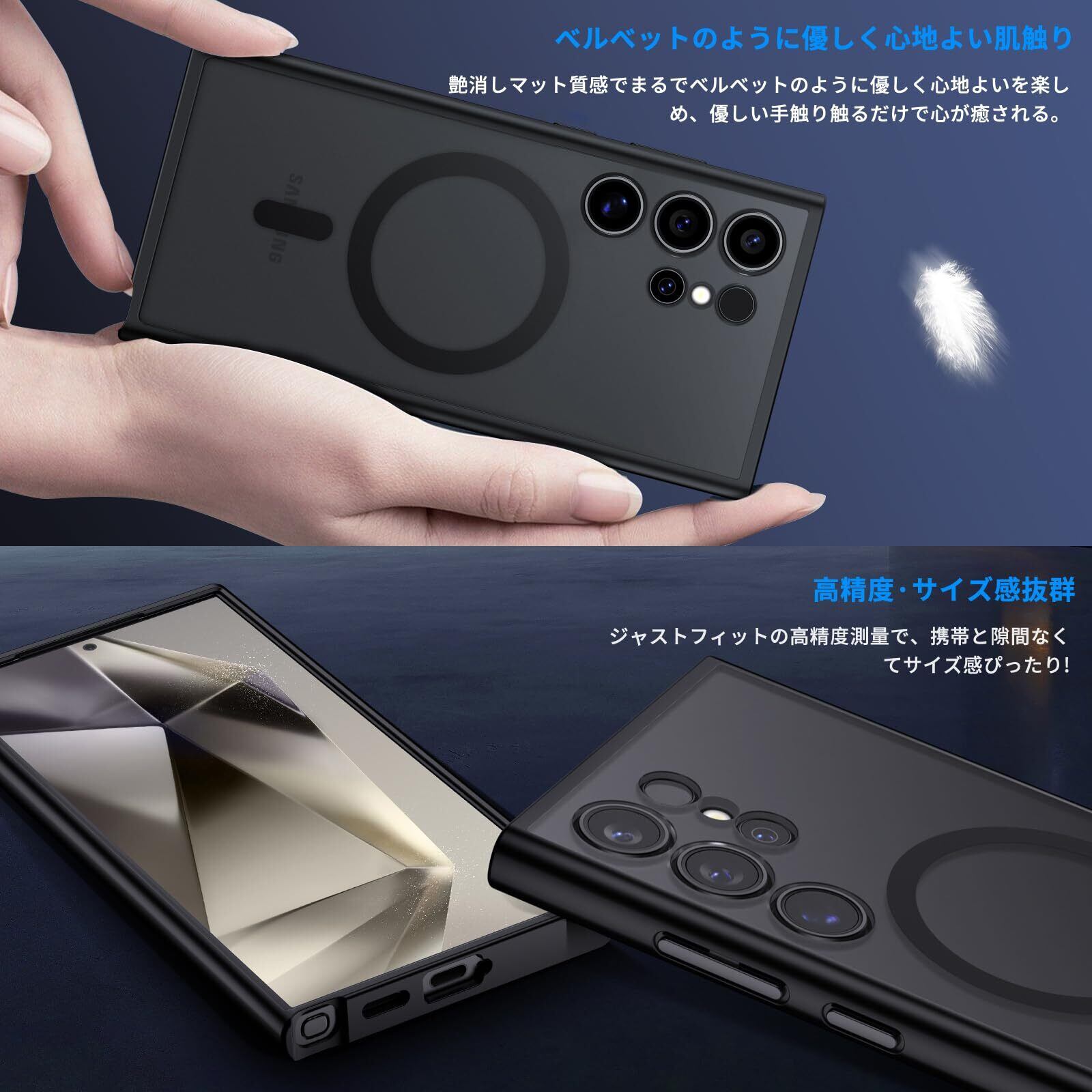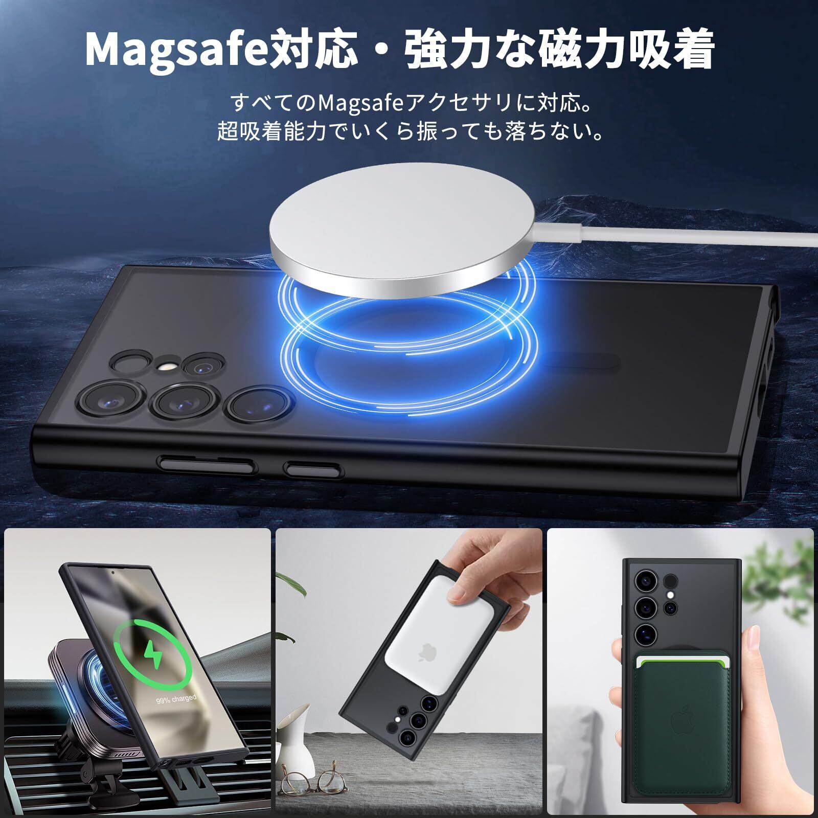 【人気】Aunote Galaxy S24 Ultra ケース Magsafeに対応 SC-52E / SCG26 マグネット搭載 ワイヤレス充電 米軍MIL規格 耐衝撃 耐久性 全面保護 黄ばみなし 指紋防止 マット半透明 ギャラクシー S24 ウルトラ カバー(ブラック)