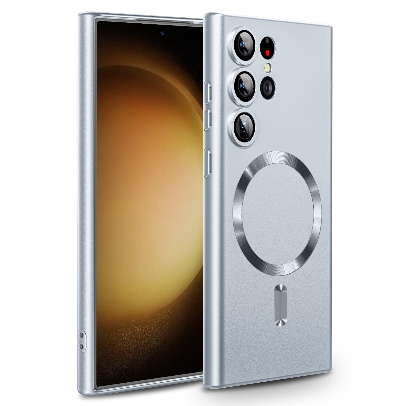 Galaxy S24 Ultra 用ケース SC-52E SCG26 ケース Magnetic対応 ワイヤレス充電 軽薄型 TPU ソフト ギャラクシー S24 ウルトラ 用スマホケース マグネット搭載 耐衝撃 米軍MIL規格取得 黄変防止 耐久性 ストラップ穴付き おしゃれ 携帯カバー 銀 D79-31