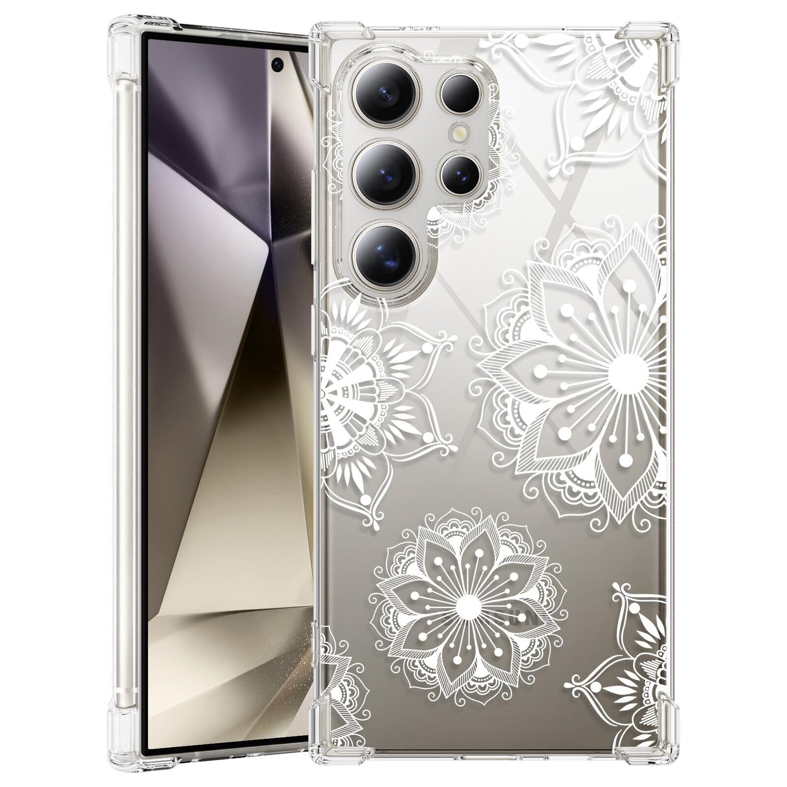 Galaxy S24 Ultra ケース 耐衝撃 おしゃれ クリア透明 スリム 薄型 tpu 指紋防止 米軍MIL規格取得 SC-52E | SCG26 用 カバー 衝撃吸収 滑り止め カメラ保護 携帯カバー 黄変防止 防塵 かわいい 携帯カバー 花 D636-s24u-01