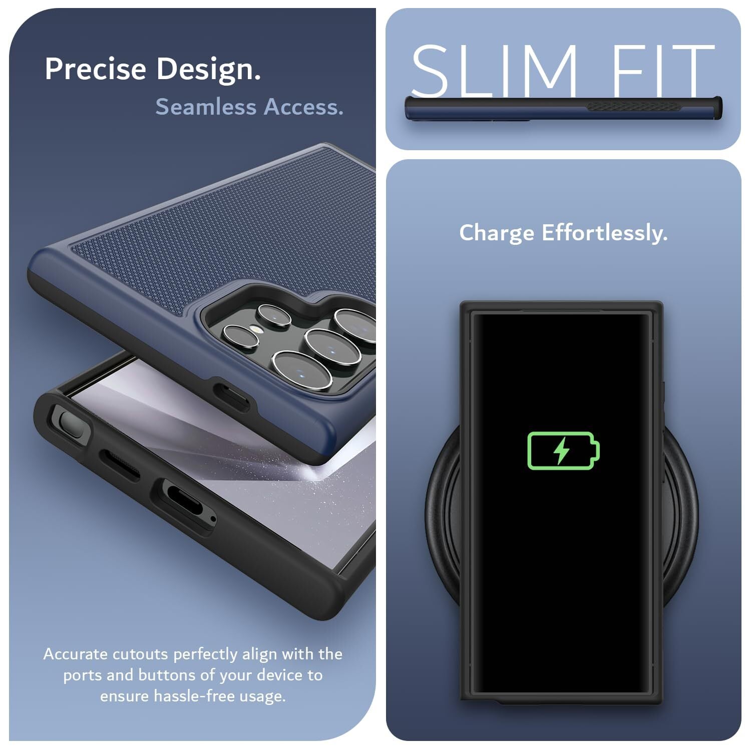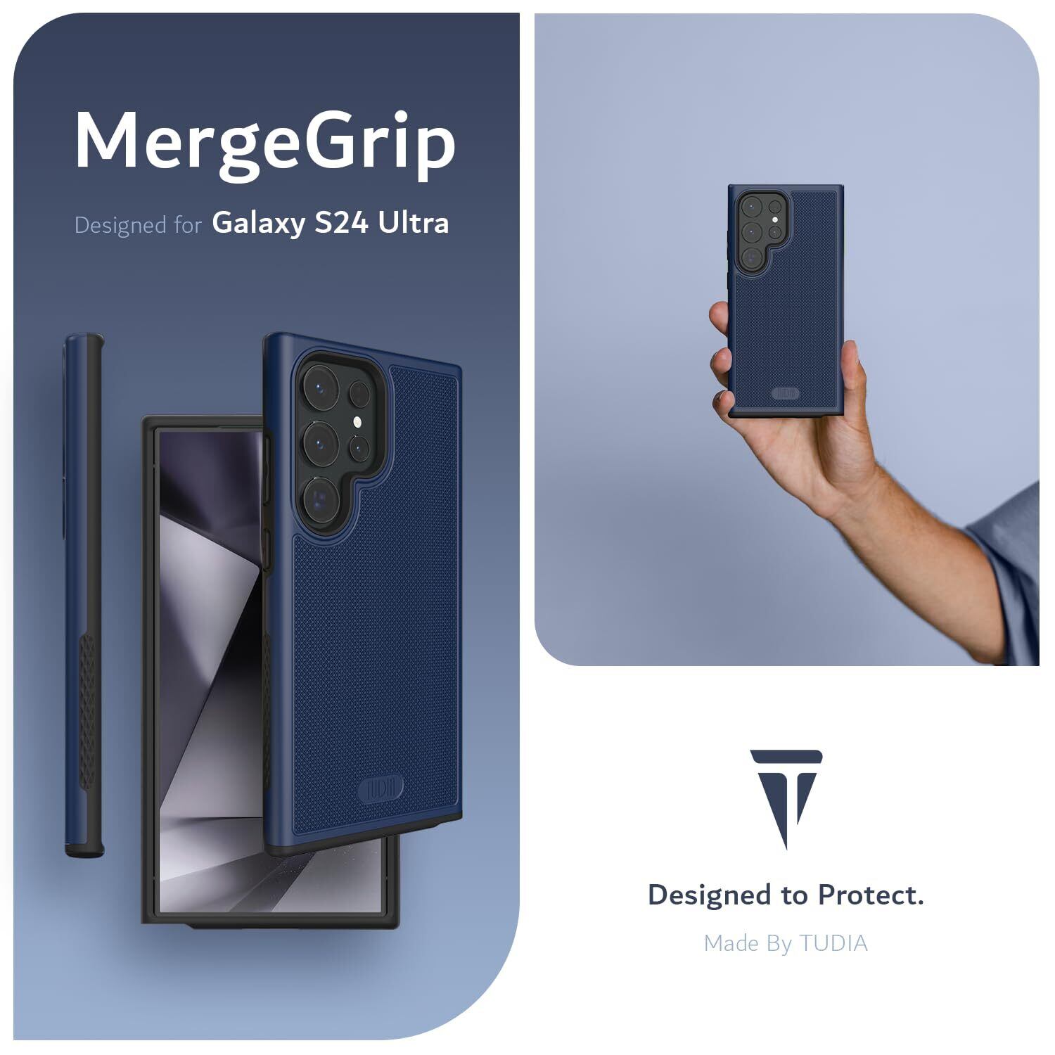 「米軍MIL規格・2層保護」TUDIA Galaxy S24 Ultra 用 ケース、「MergeGrip」2層保護 耐衝撃 滑り止め 超薄型TPU Samsung Galaxy S24 Ultra 対応 ケース - インディゴブルー