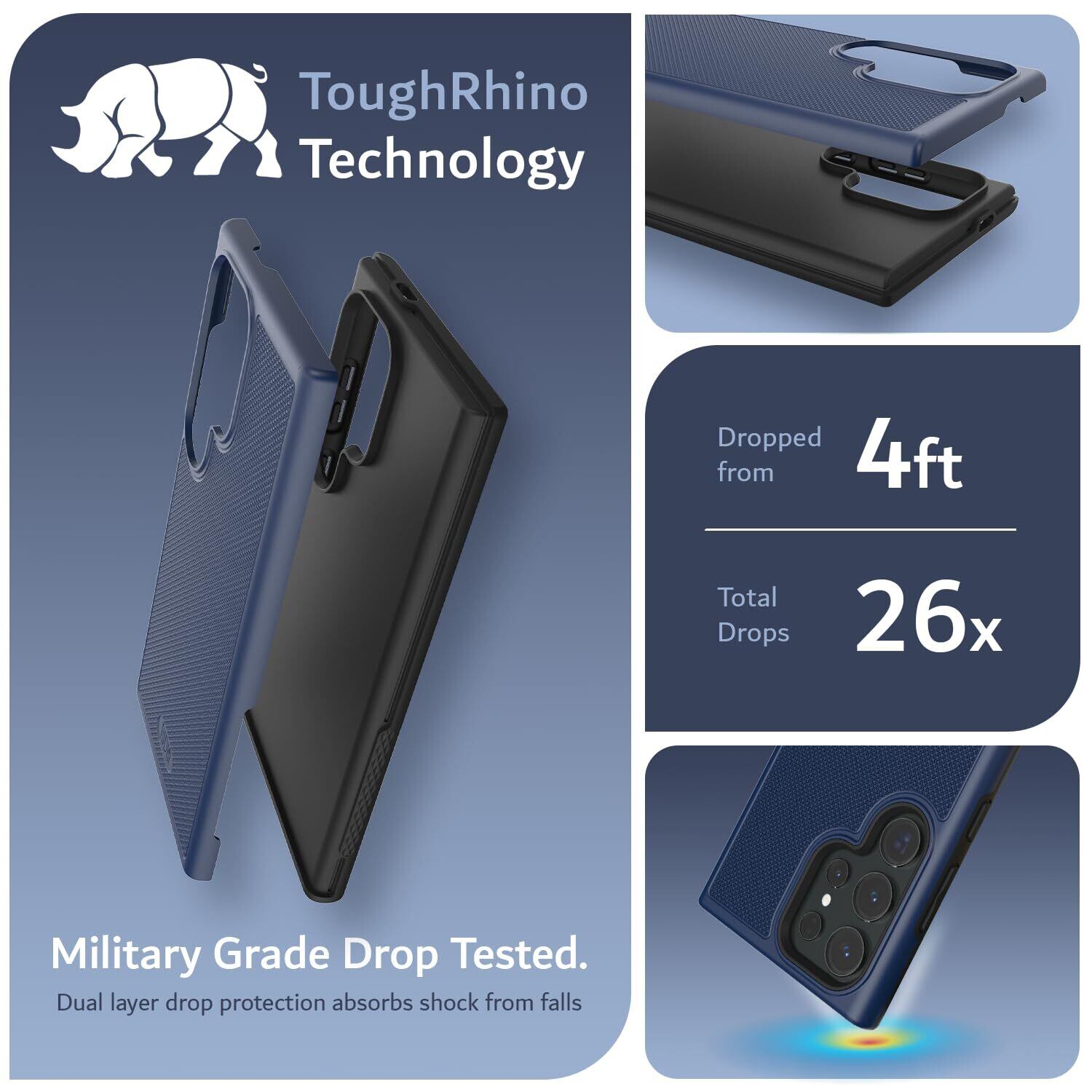 【落下テスト済み】認定された軍用グレードと ToughRhino テクノロジーにより、落下や傷に対する二重層保護を実現