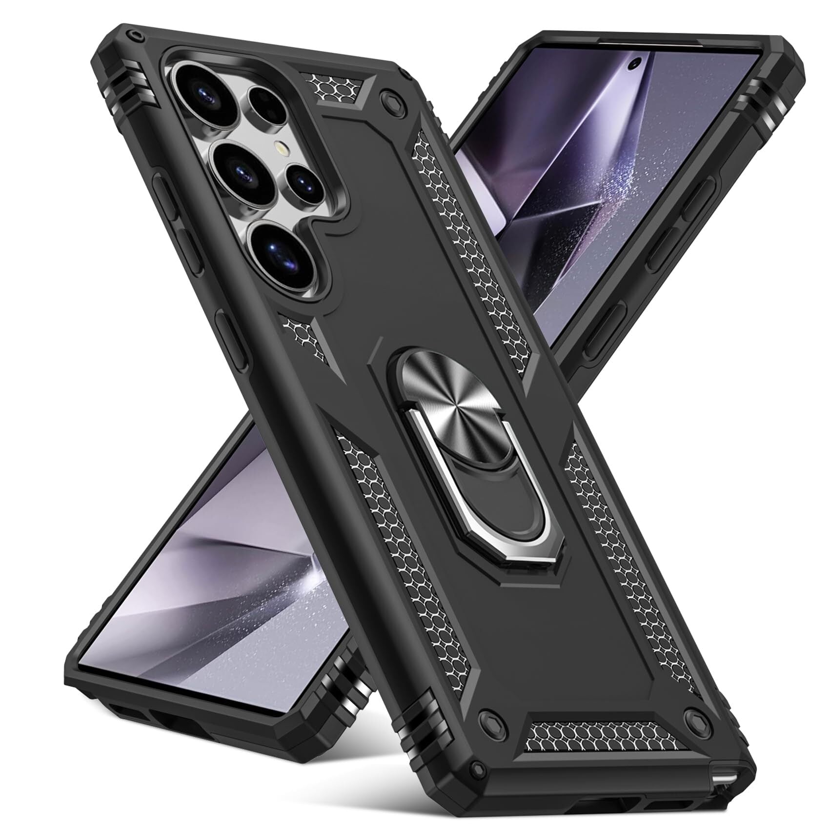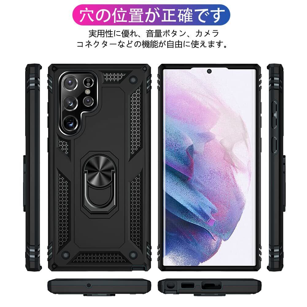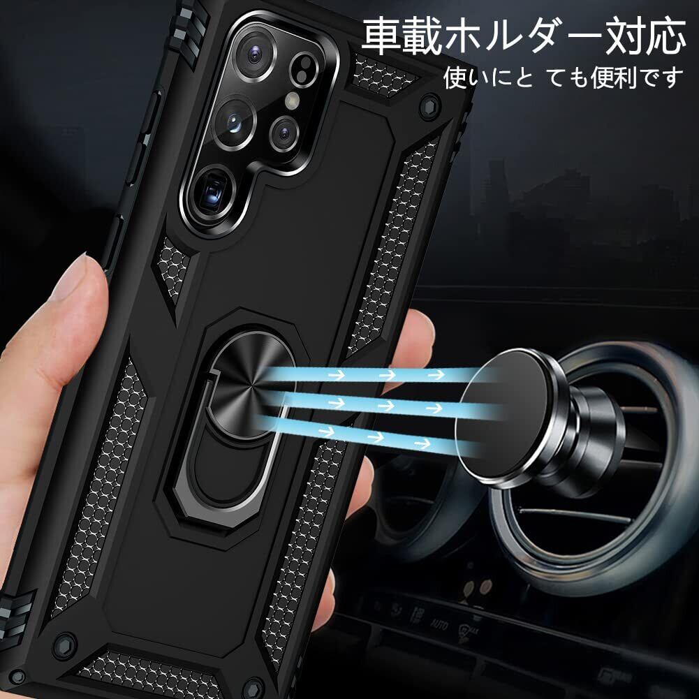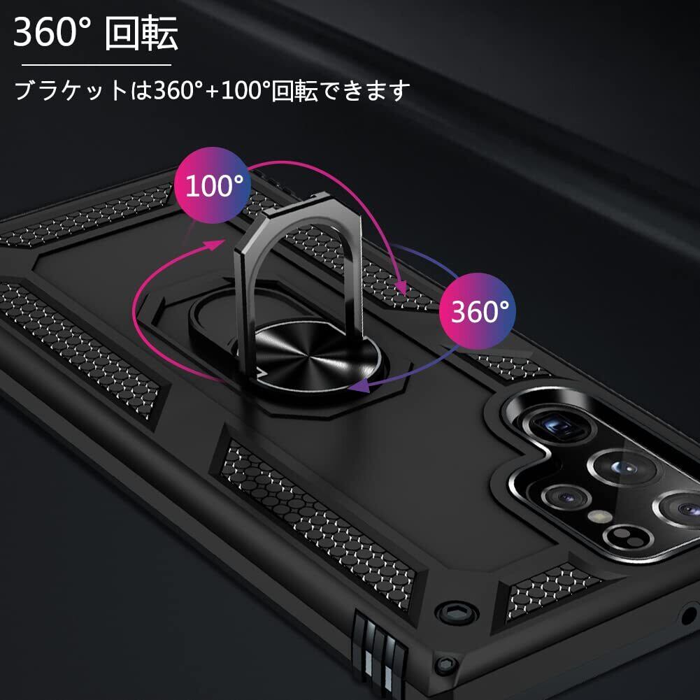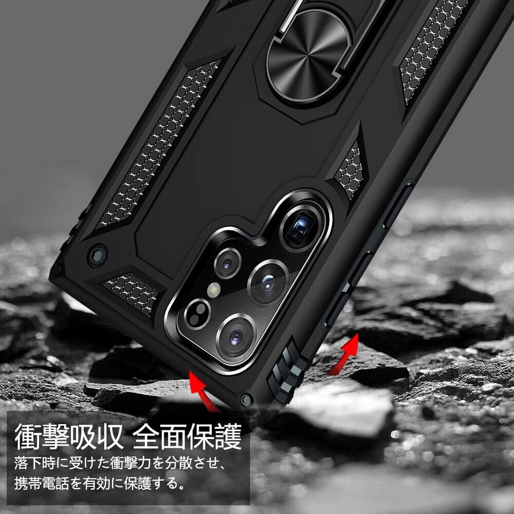 Galaxy S25 Ultra 用ケース リング付き PC対応 落下衝撃吸収 TPU フルプロテクトデザインスマホケース 耐衝撃 360度回転 車載ホルダー対応 ギャラクシー s25 ウルトラ 用ケース 米軍MIL規格 軽量 薄型 擦り傷防止 取り出し易い スタンド機能 落下防止 黒 D58-71