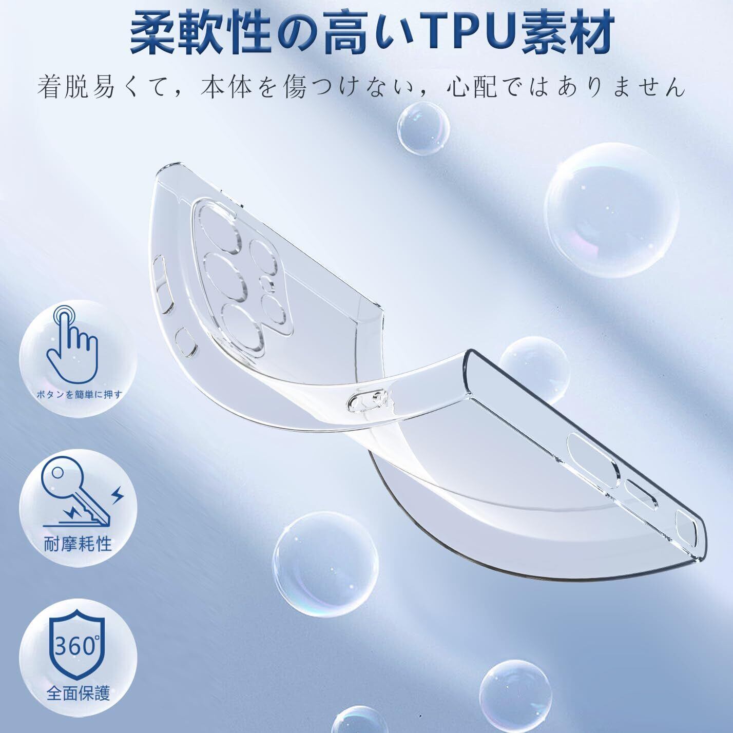 【抜群のフィット】ケースは柔らかいTPU素材を使用し、本体との擦れを防げ、ケースの着脱も簡単にできます。tpuやガラス素材よりも柔軟ですが、通常のTPU素材よりも頑丈です。落下時には衝撃力を分散し、大事なデバイスを全面保護します。また、ケースは型どりを緻密に実施しており、本体に完璧にフィットするとともに、持ったときの圧倒的なフィット感も実現しています。