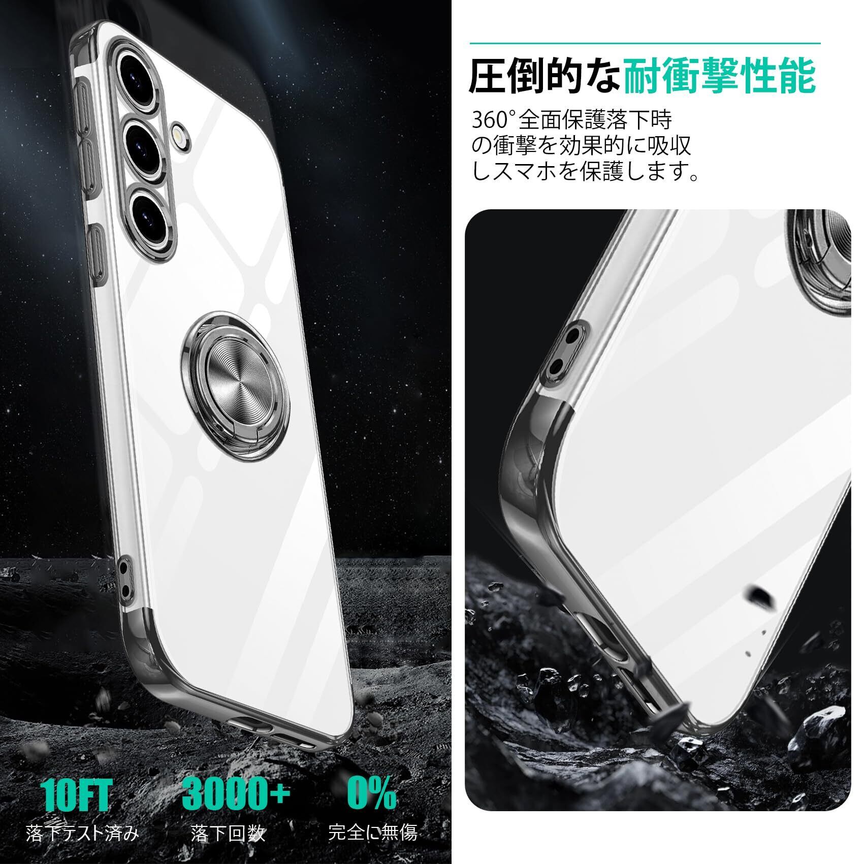 Galaxy S25 用ケース リング付き クリア 耐衝撃 落下衝撃吸収 tpu シリコン 軽量 薄型 メッキ加工 ストラップホール付き ギャラクシー S25 用ケース 全面保護 スタンド機能 車載ホルダー対応 360°回転 耐久 落下防止 人気 携帯カバー 透/銀 ZW81-39