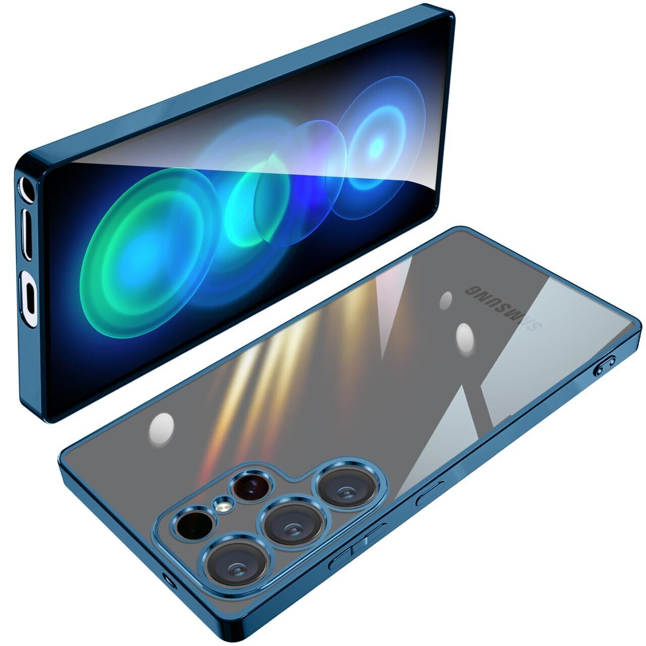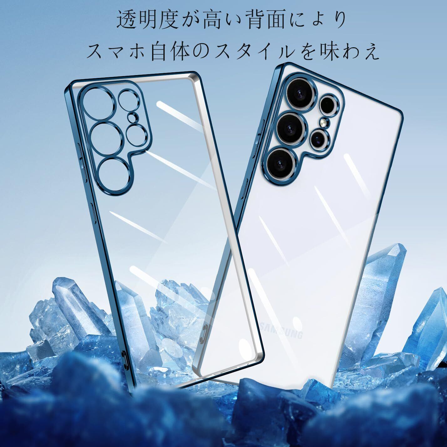 Galaxy S25 ultra ケース クリア SC-52F 耐衝撃 TPU レンズ保護 ソフト 透明 メッキ加工 ワイヤレス充電 ギャラクシーS25ultra スマホケース ラップホール付き (ブルー)