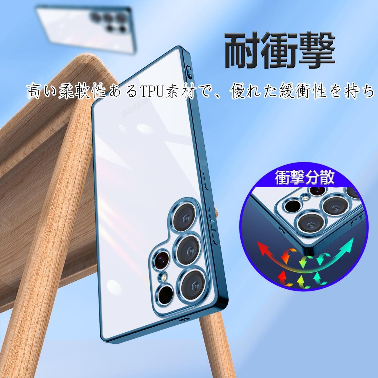 【在庫処分】Galaxy S25 ultra ケース クリア SC-52F 耐衝撃 TPU レンズ保護 ソフト 透明 メッキ加工 ワイヤレス充電 ギャラクシーS25ultra スマホケース ラップホール付き (ブルー)