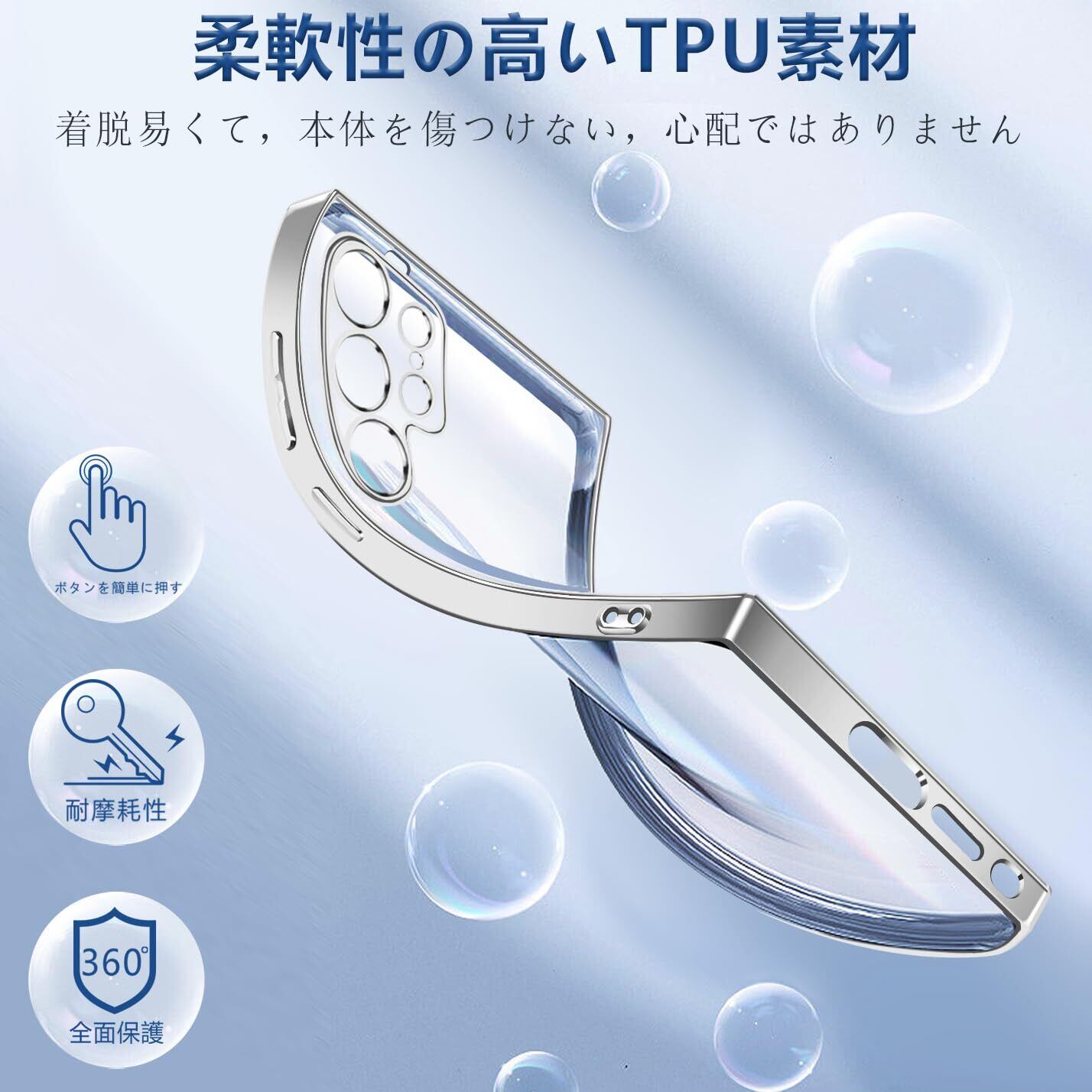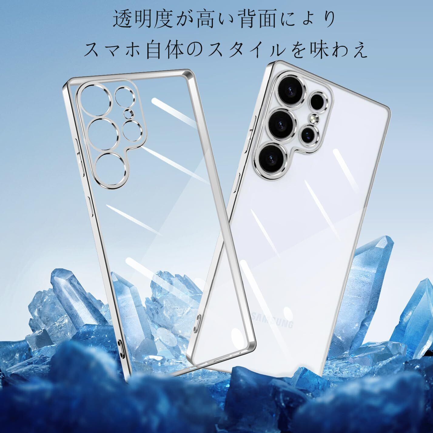 Galaxy S25 ultra ケース クリア SC-52F 耐衝撃 TPU レンズ保護 ソフト 透明 メッキ加工 ワイヤレス充電 ギャラクシーS25ultra スマホケース ラップホール付き (シルバー)