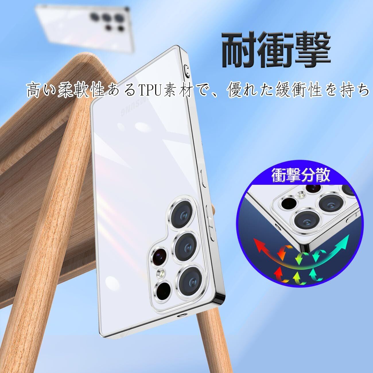 【在庫のみ】Galaxy S25 ultra ケース クリア SC-52F 耐衝撃 TPU レンズ保護 ソフト 透明 メッキ加工 ワイヤレス充電 ギャラクシーS25ultra スマホケース ラップホール付き (シルバー)