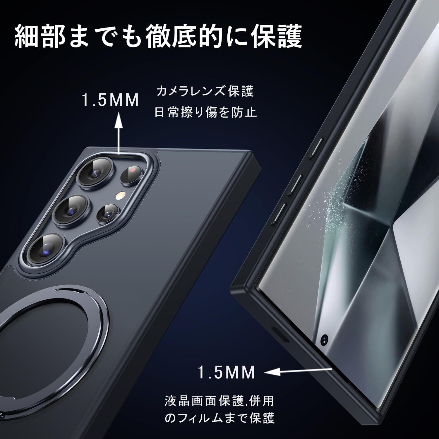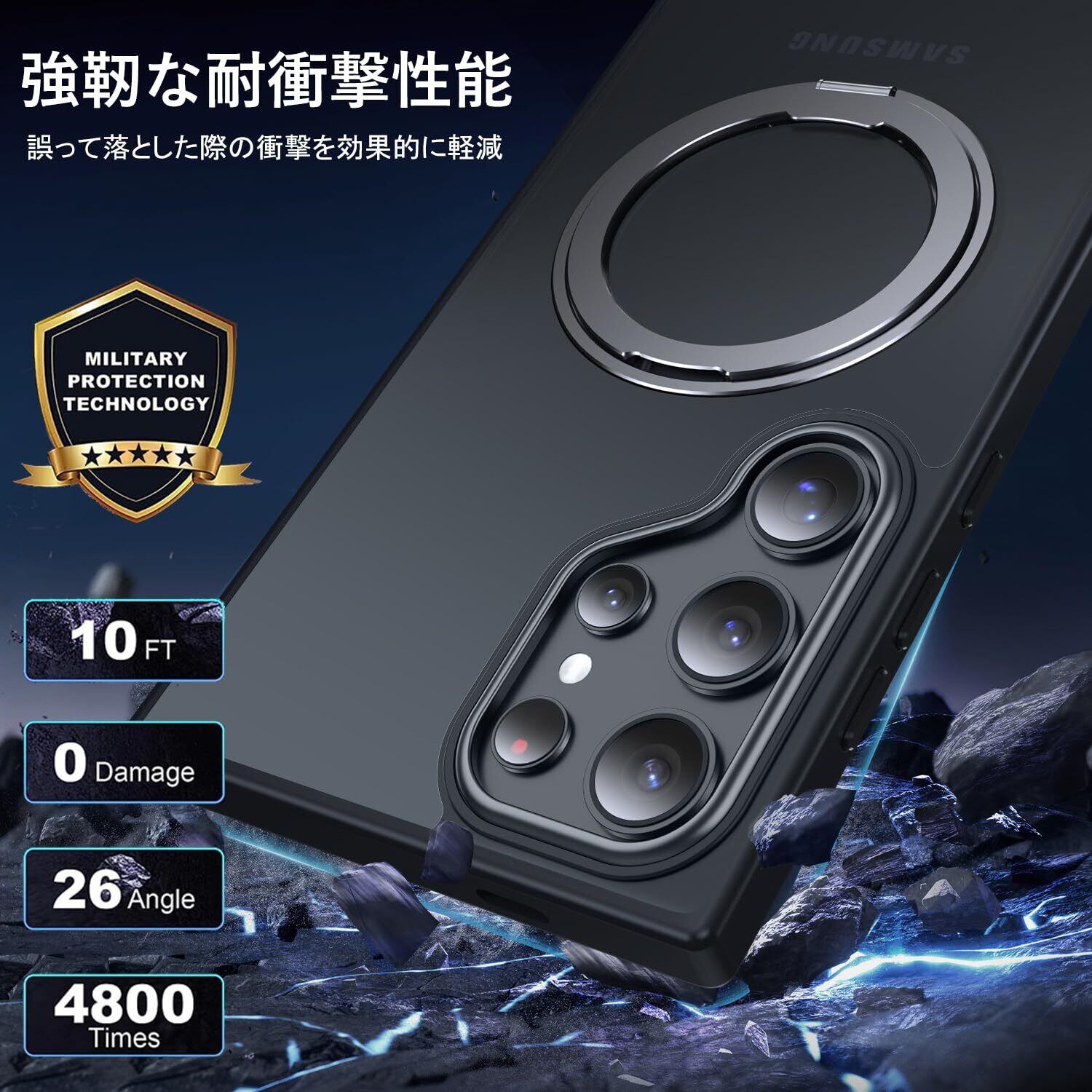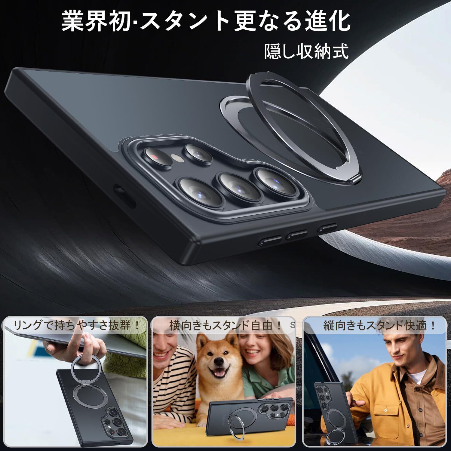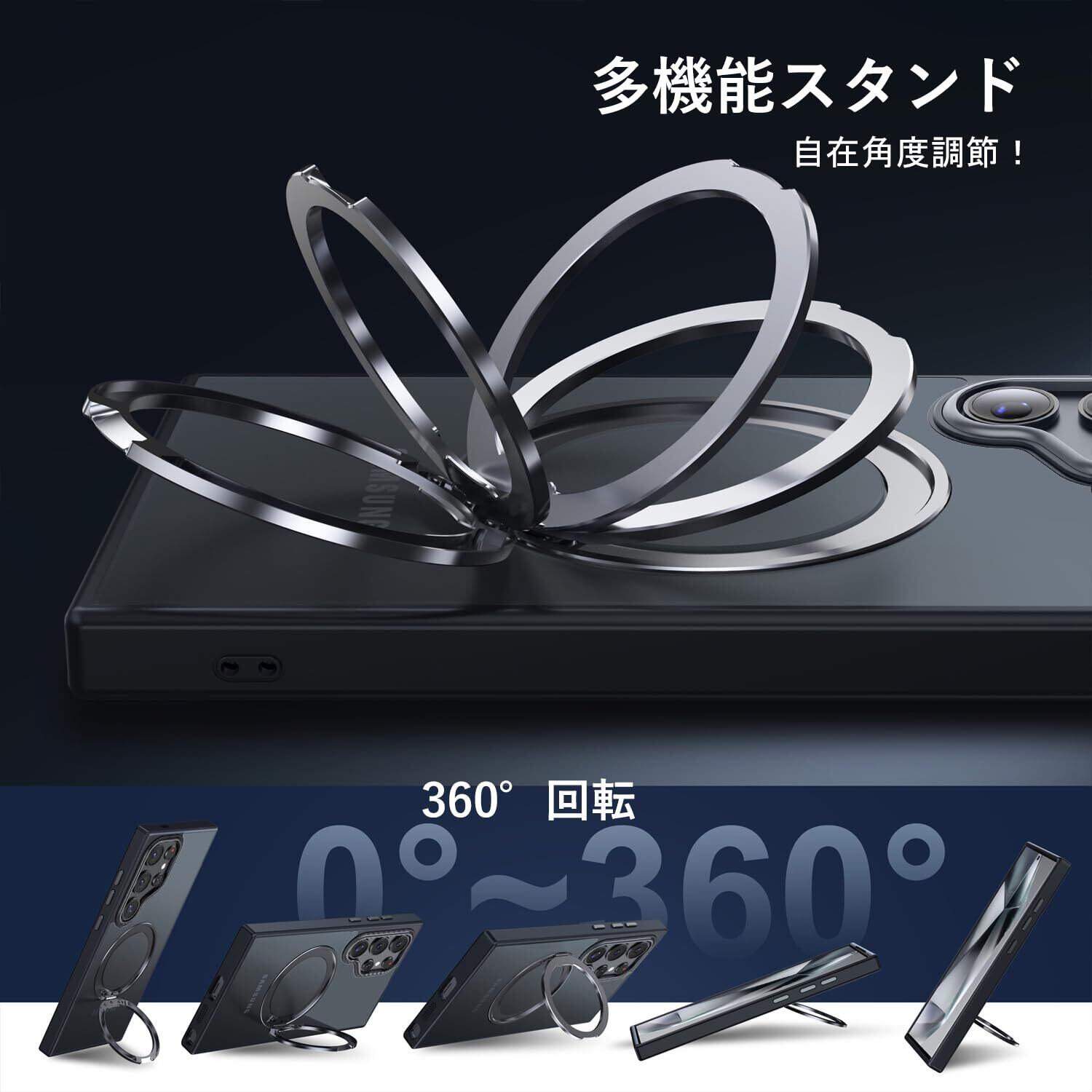 Galaxy S25 Ultra 用 ケース Magsafe対応 ギャラクシーs25ウルトラ / SC-52F / SCG32 カバー 360°回転スタンド Uovon スマホケース 携帯ケース ワイヤレス充電 車載ホルダー 対応 ストラップ穴付き 半透明 指紋防止 黄变防止 ・ ブラック