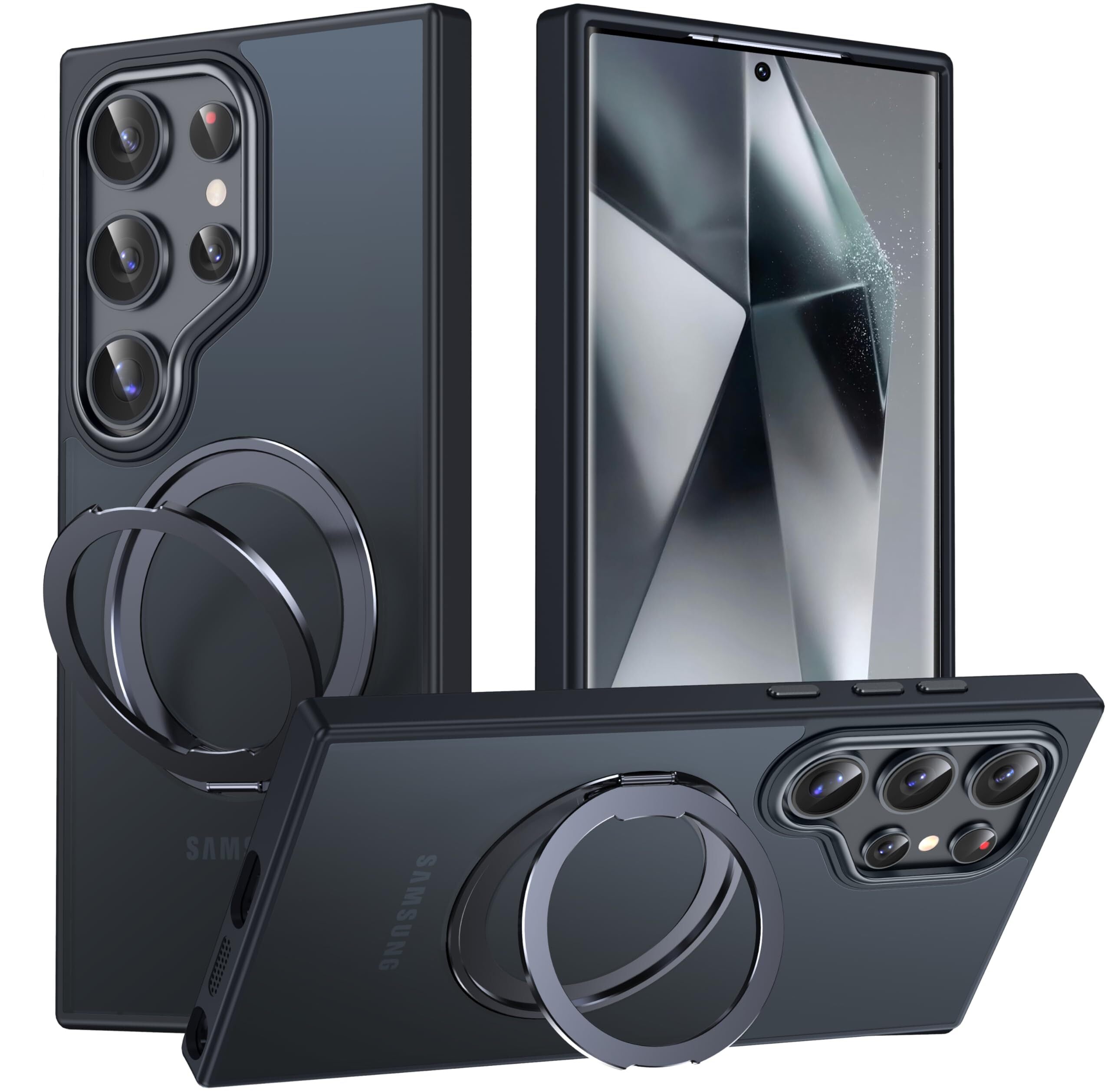【努力特価】Galaxy S25 Ultra 用 ケース Magsafe対応 ギャラクシーs25ウルトラ / SC-52F / SCG32 カバー 360°回転スタンド Uovon スマホケース 携帯ケース ワイヤレス充電 車載ホルダー 対応 ストラップ穴付き 半透明 指紋防止 黄?防止 ・ ブラック