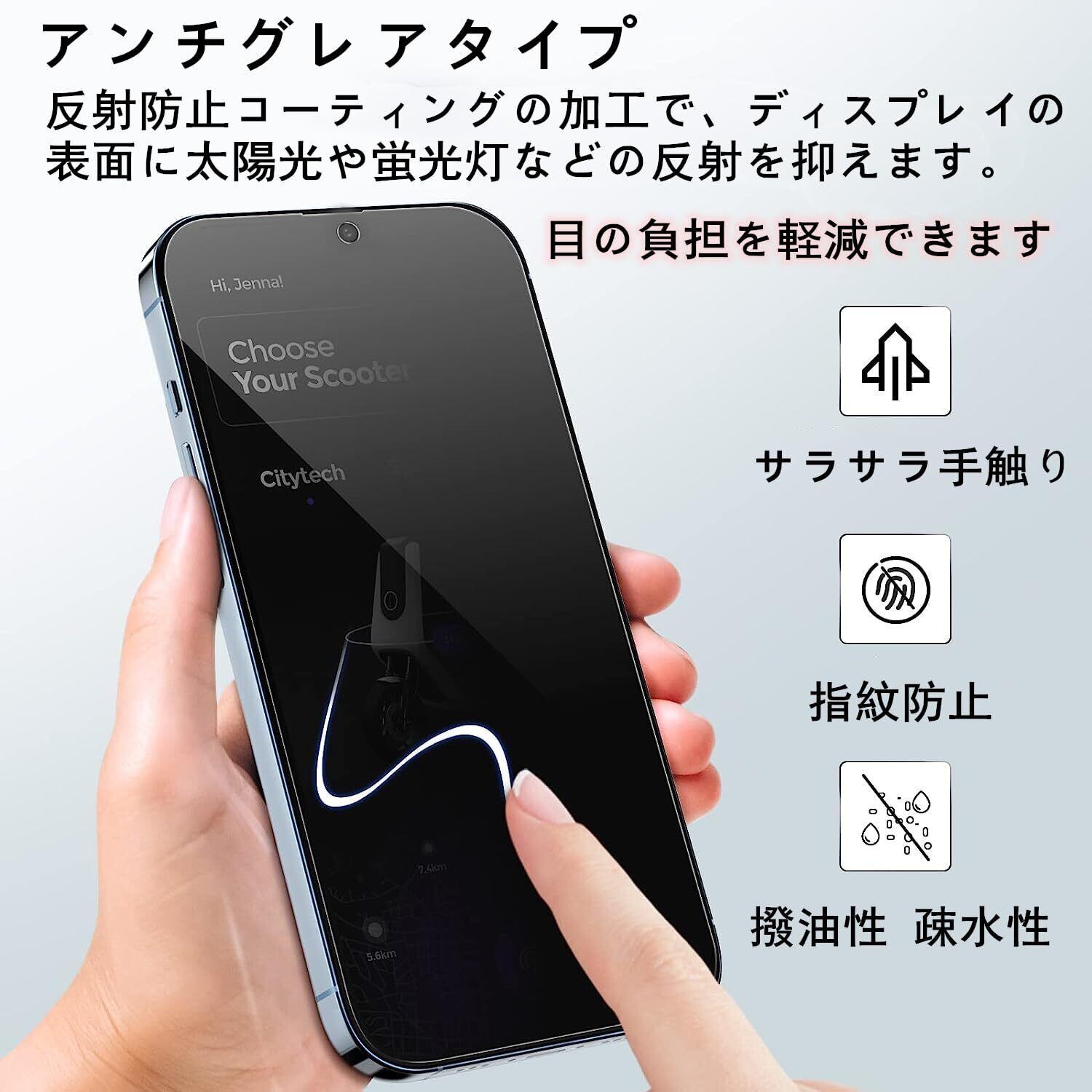 ガラス表面に特殊なコーティング加工されており、指紋や汚れが付きにくく、快適なタッチ操作性を実現します。