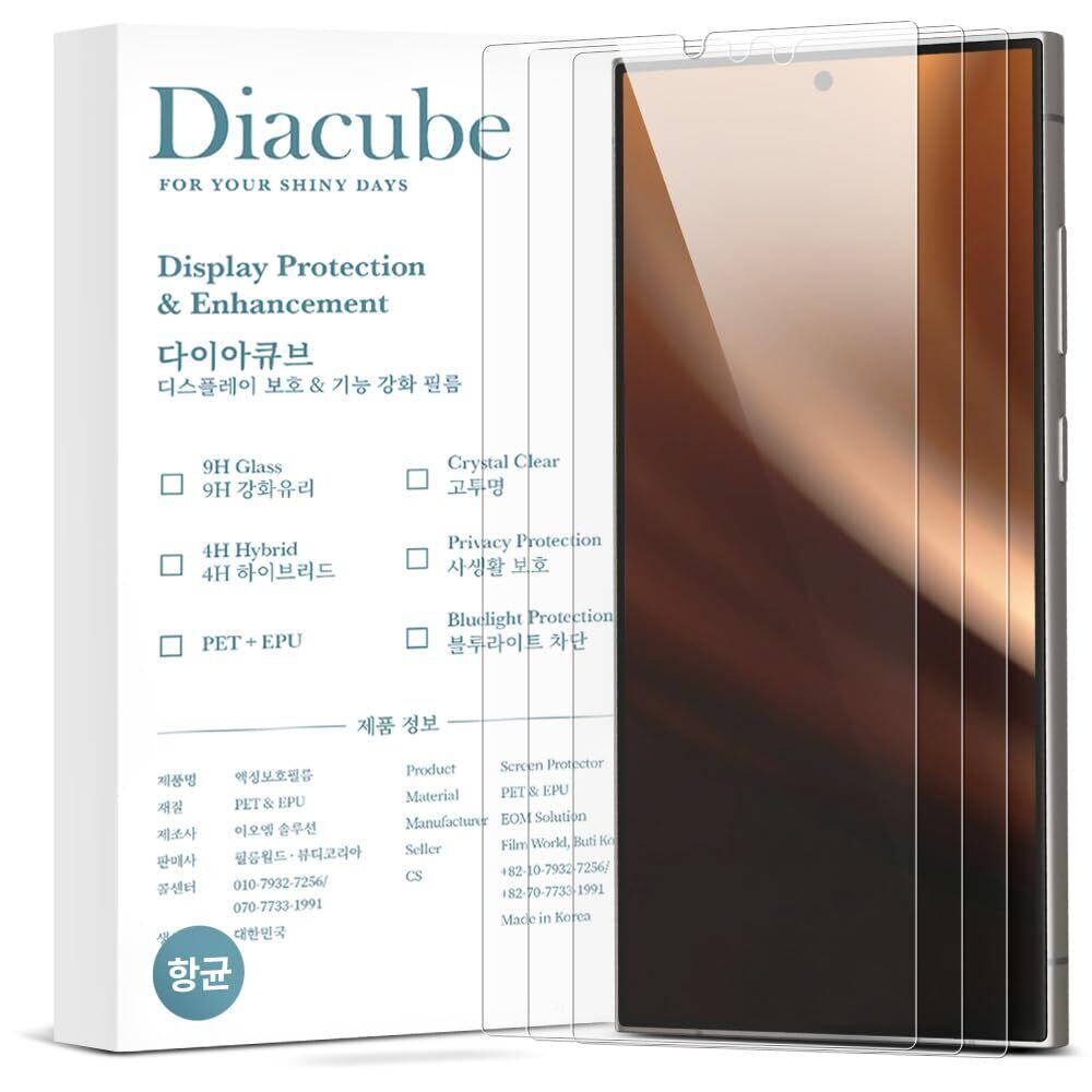 【在庫のみ】【取り付け簡単】DIACUBE Galaxy S25 Ultra専用 6H PETガラスコーティング抗菌フィルム 【3枚】【割れない】【93%以上の透過率】【指紋の汚れを最小限に抑える】【気泡ゼロ】【傷防止】