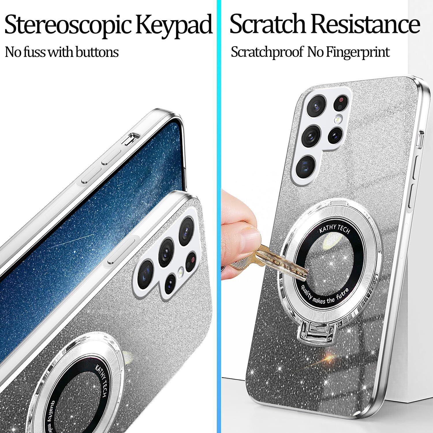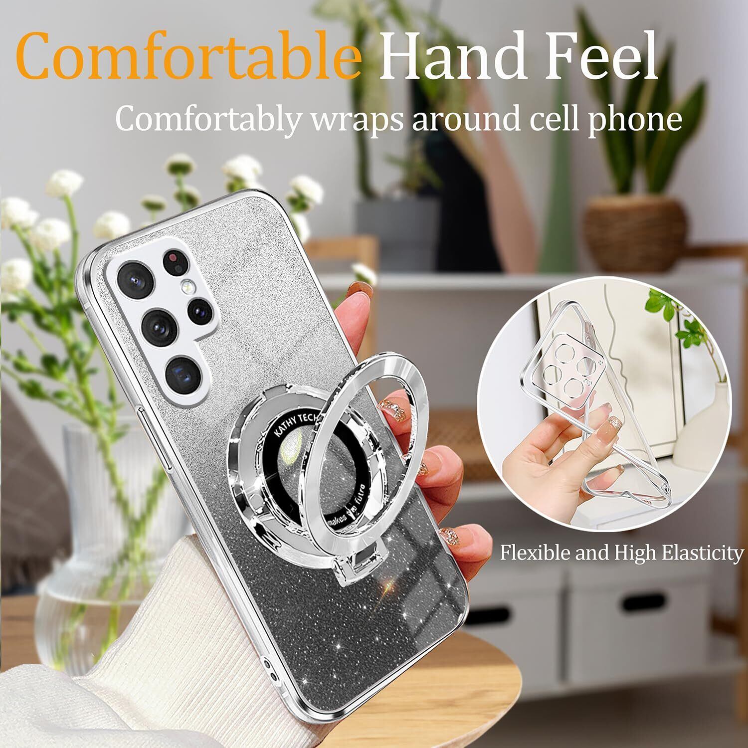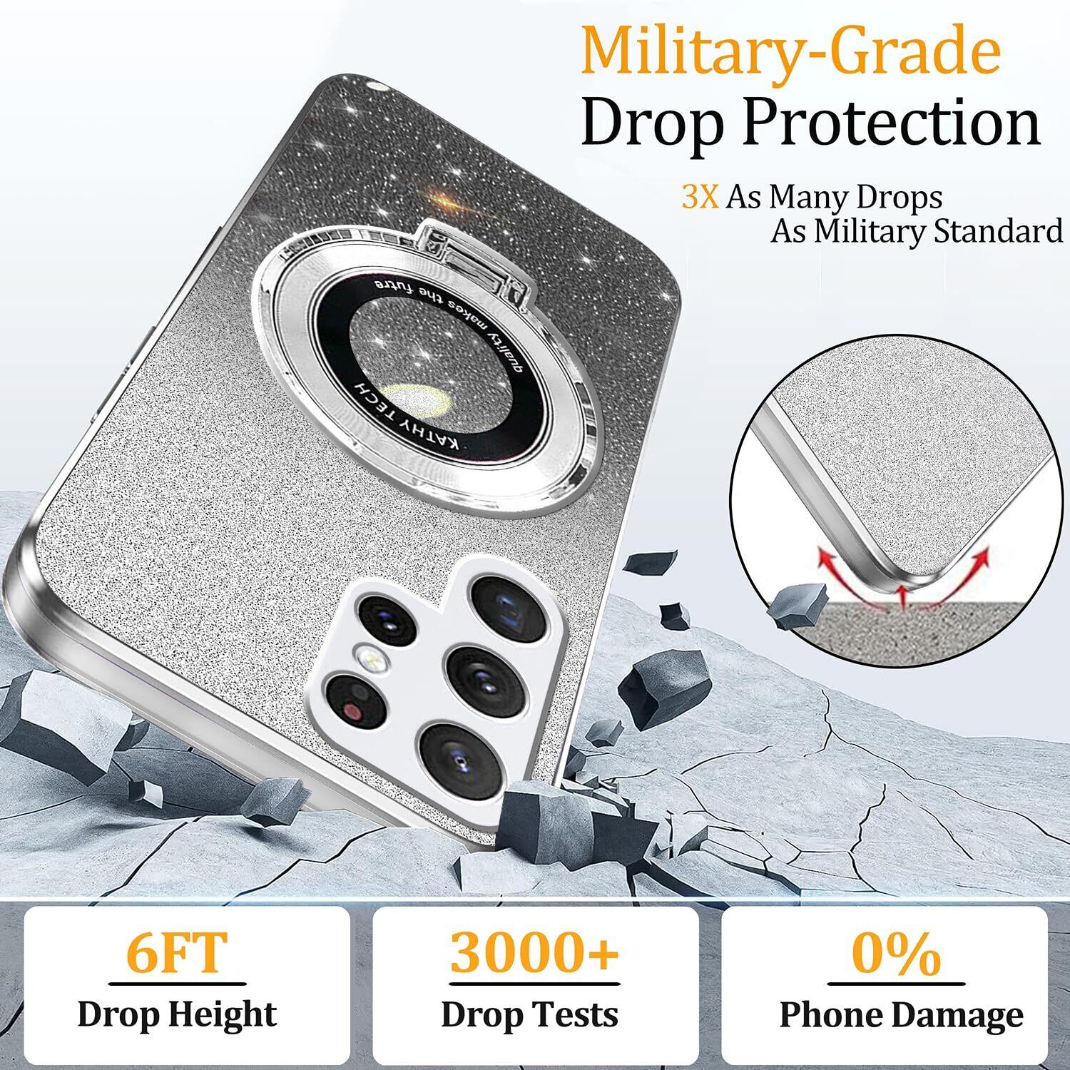 【リングの機能&スタンド機能】互換性がありますGalaxy S25 Ultra スマホケースきらきら耐衝撃360°回転可能リングホルダーです。片手で携帯を操作でき、滑り止め、強奪、落下などのことを防げます。このスタンドを使えば、携帯電話を横に置いて、音楽、Facetime、映画、その他のエンターテインメントをどこでも楽しむことができます。