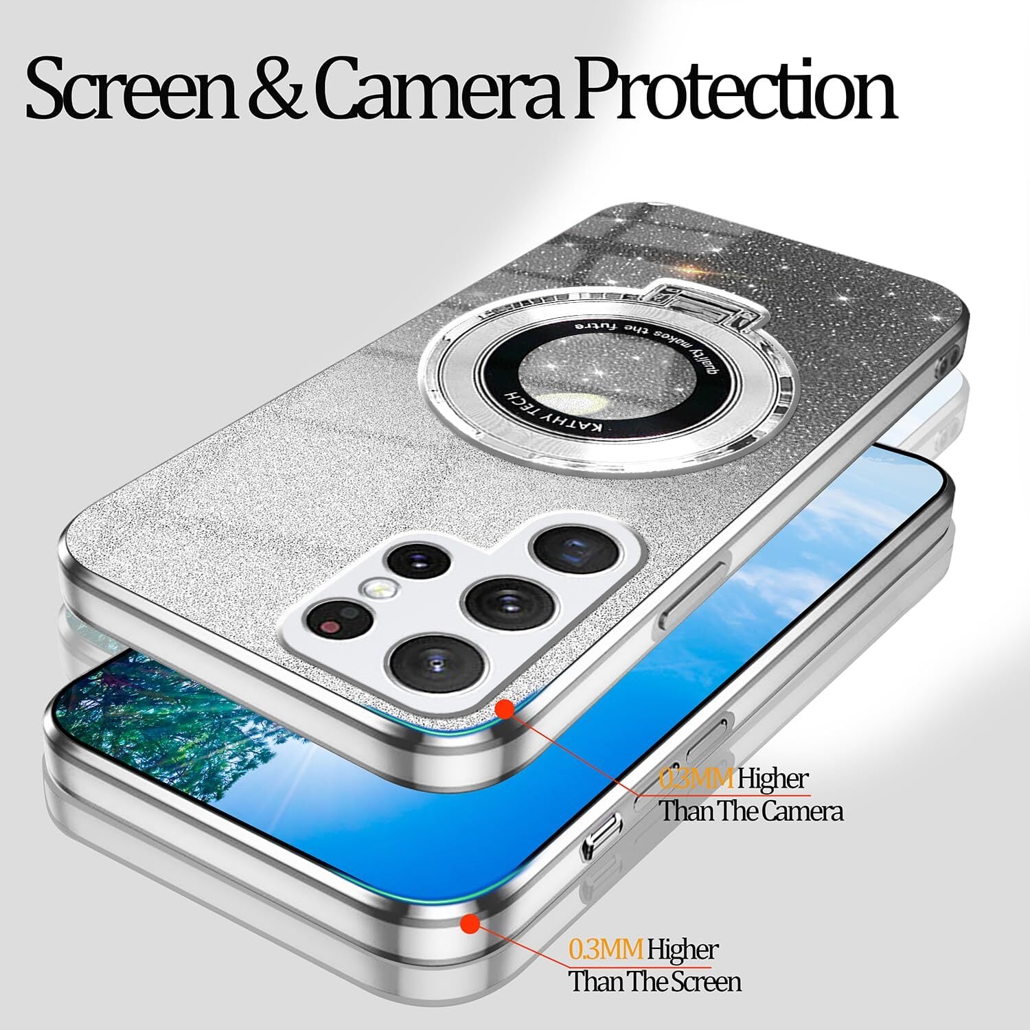 対応機種Galaxy S25 Ultra ケースキラキラリング付き保護カバー。