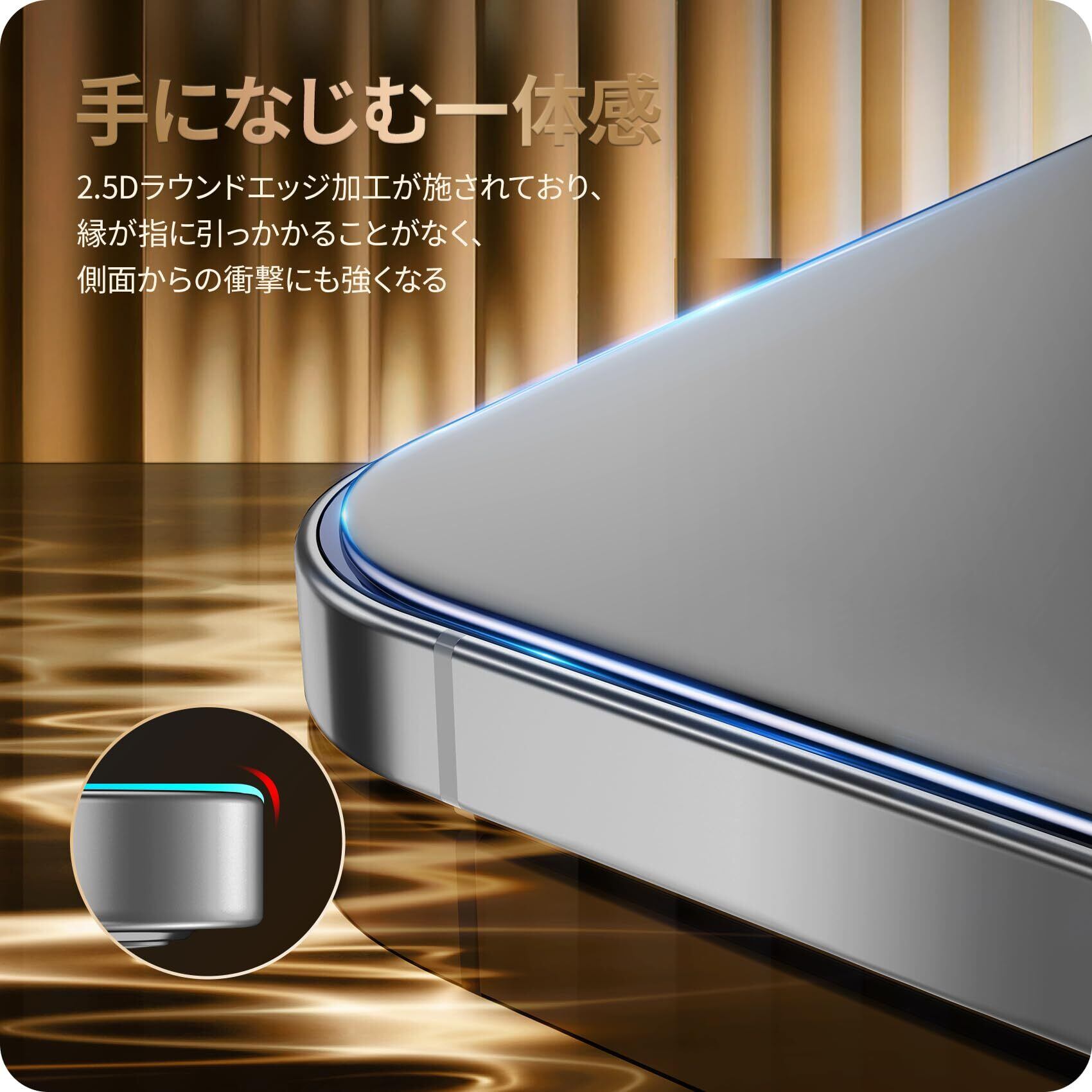 特徴 高透過率 / 2.5Dラウンドエッジ加工 / 9H硬度ガラス / 優れた耐衝撃性 / 飛散防止 /ケースと干渉せず / 初心者でも貼付簡単