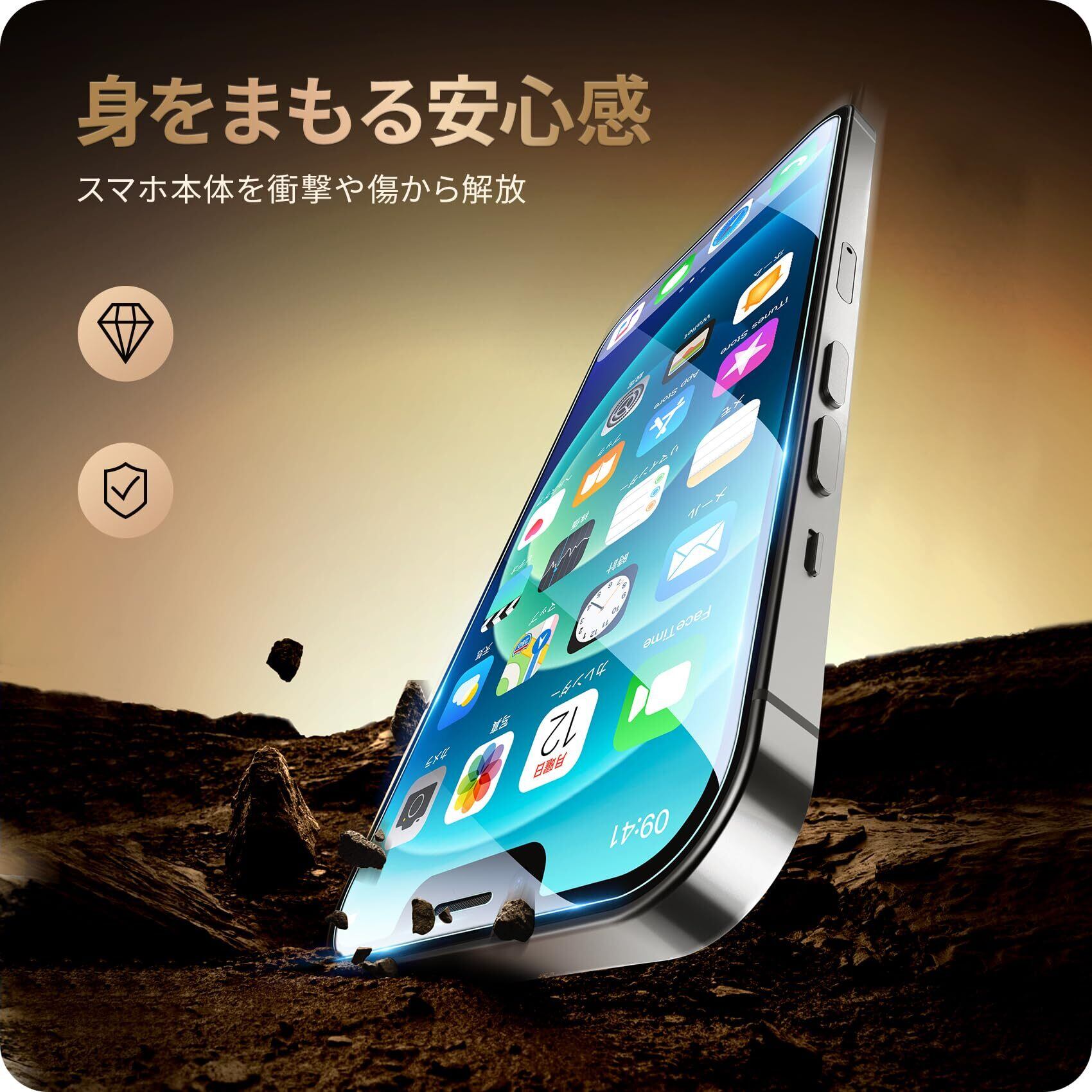 高品質日本製素材製 :9H硬度を持つガラスにハードコーティングが施されることにより、外部からの衝撃をフィルムが吸収し、画面へのダメージを最低限まで抑えました。