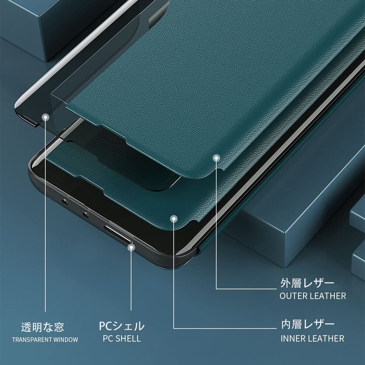 【人気】Galaxy S24 Ultraのケース 半透明 側面視窓 PUレザー 薄型 可愛い 面白い おしゃれ キャラクター 手帳型 カバー 携帯電話 スタンド機能 ワイヤレス充電 磁気吸着 かわいい レンズ保護 マグネット 落下防止 スマホ 全面保護 指紋防止 人気 フリップ 耐衝撃 滑り防止 軽量 beautycatcher - 緑