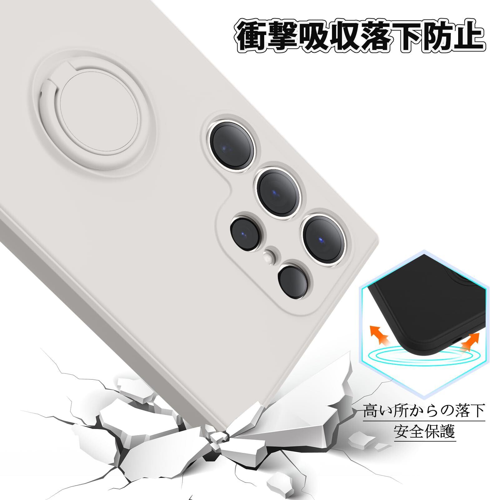Galaxy S24 Ultra ケース 耐衝撃リング付き シリコン 薄型 Galaxy S24 Ultra カバー スリム tpu 磨り表面 指紋防止 Galaxy S24 Ultra カバー 柔らかい裏地 米軍MIL規格 黄ばみなし レンズ保護 滑り止め 柔軟性 擦り傷防止 ベージュ白 N413-s24u-04