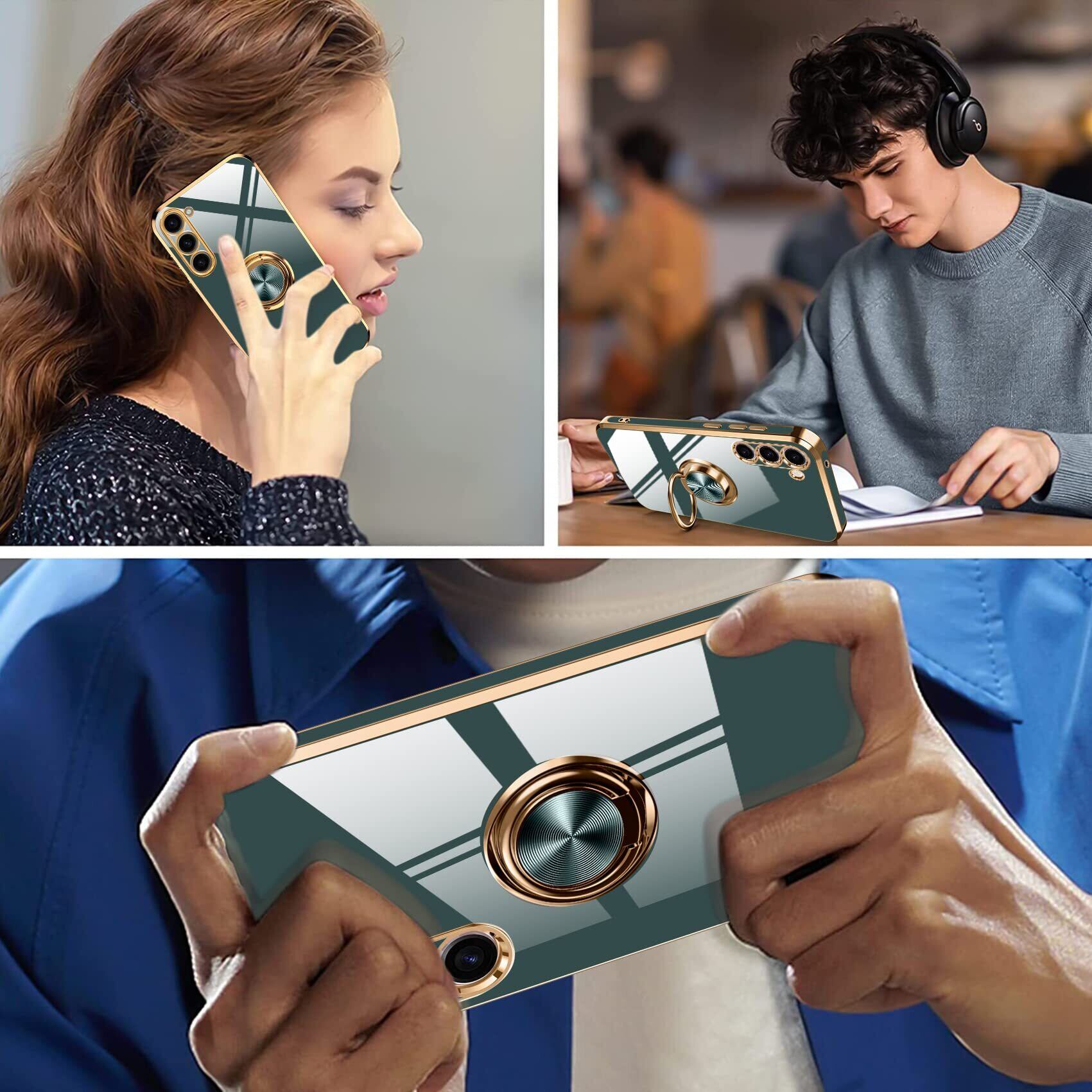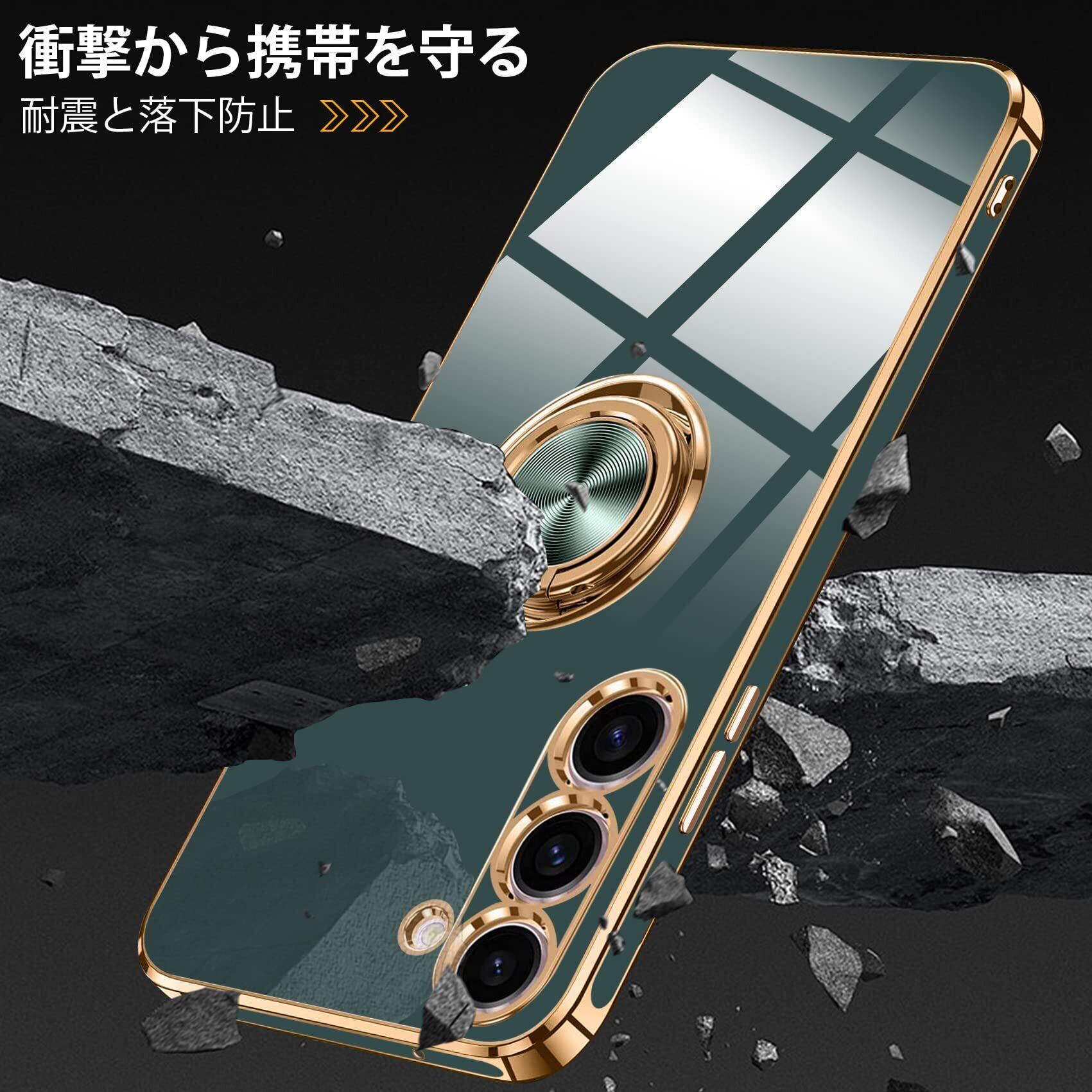 Galaxy S24 Ultra ケース リング 耐衝撃 レンズ保護 軽量 サムスン ギャラクシー s24 ウルトラケース メッキ加工 ソフトケース スタンド機能 車載ホルダー 対応 サラサラ触り心地 グレー MZ85-48