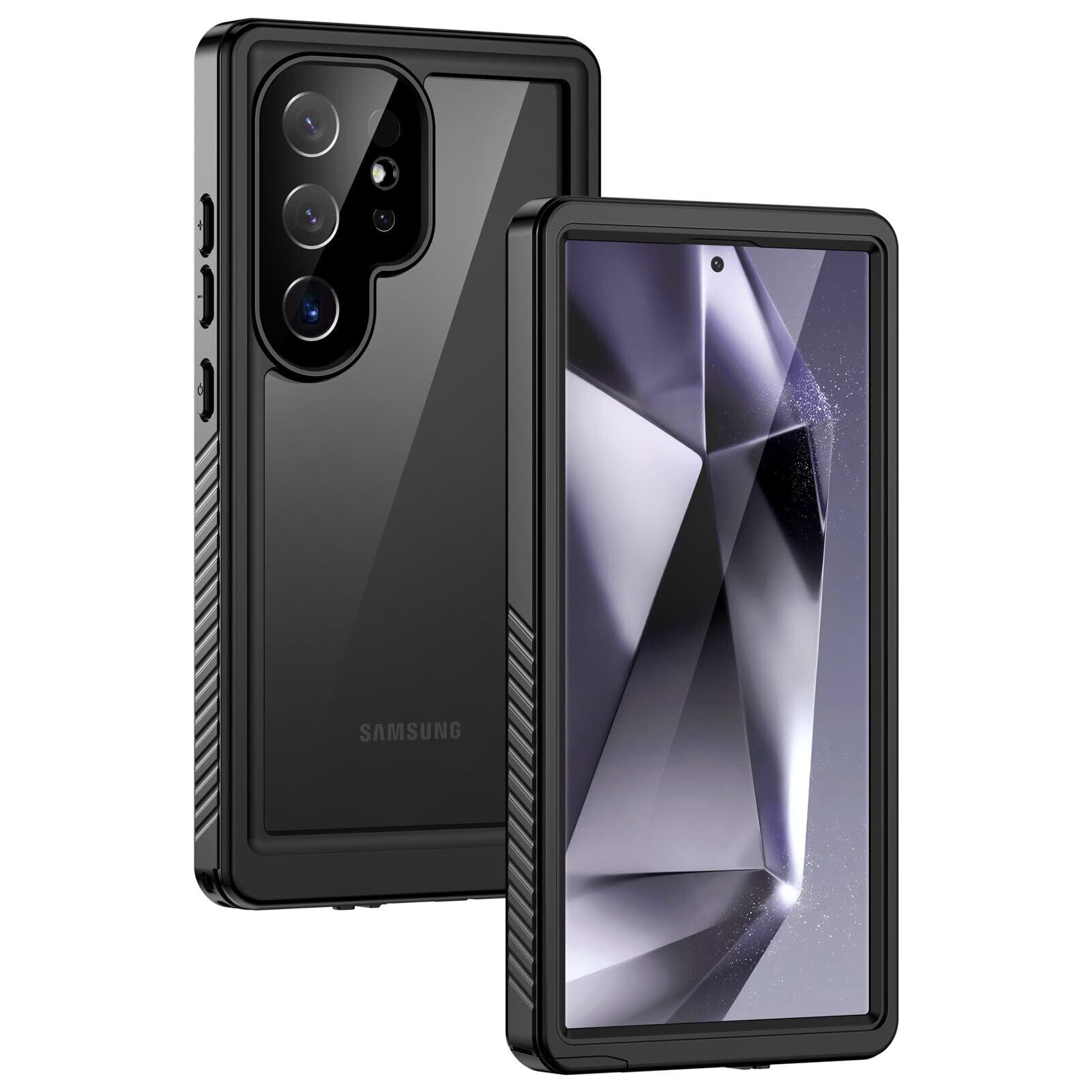 Lanhiem Samsung Galaxy S24 Ultra 5G 防水ケース 完全防水 IP68米軍規格 指紋認証 タッチ可 耐衝撃 滑り止め 防塵 防雪 水中撮影 ワイヤレス充電サポート超軽量 薄型 透明 付け外し簡単 ギャラクシー S24 Ultra 全面保護カバー ブラック