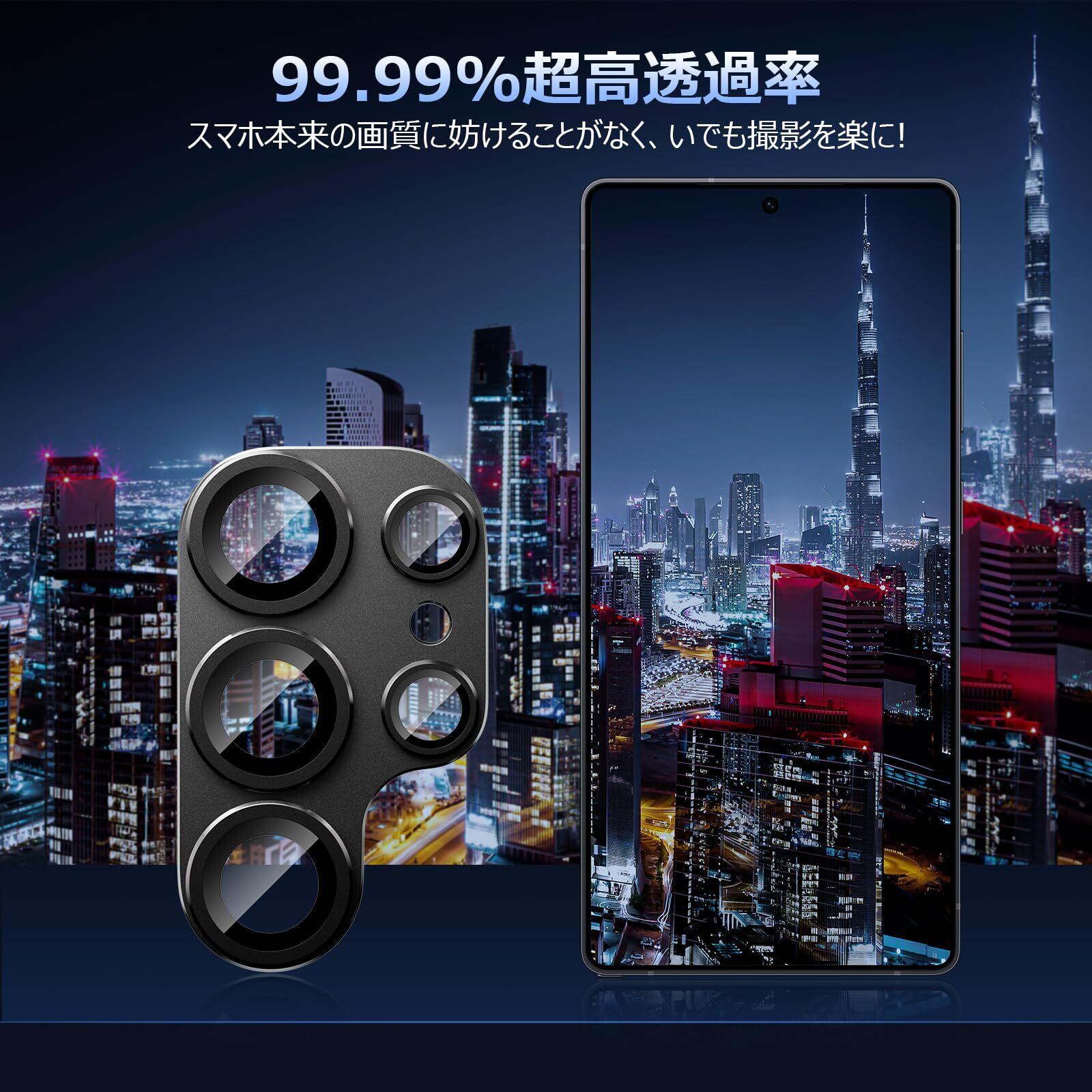 レンズカバー Samsung Galaxy S25 Ultra用 カメラフィルム アルミ合金製 9H強化ガラス 傷防止 レンズ保護 耐衝撃 S25 Ultra用 カメラ保護 高透過率 黒縁取り 露出オーバー防止 カメラレンズプロテクター ブラック