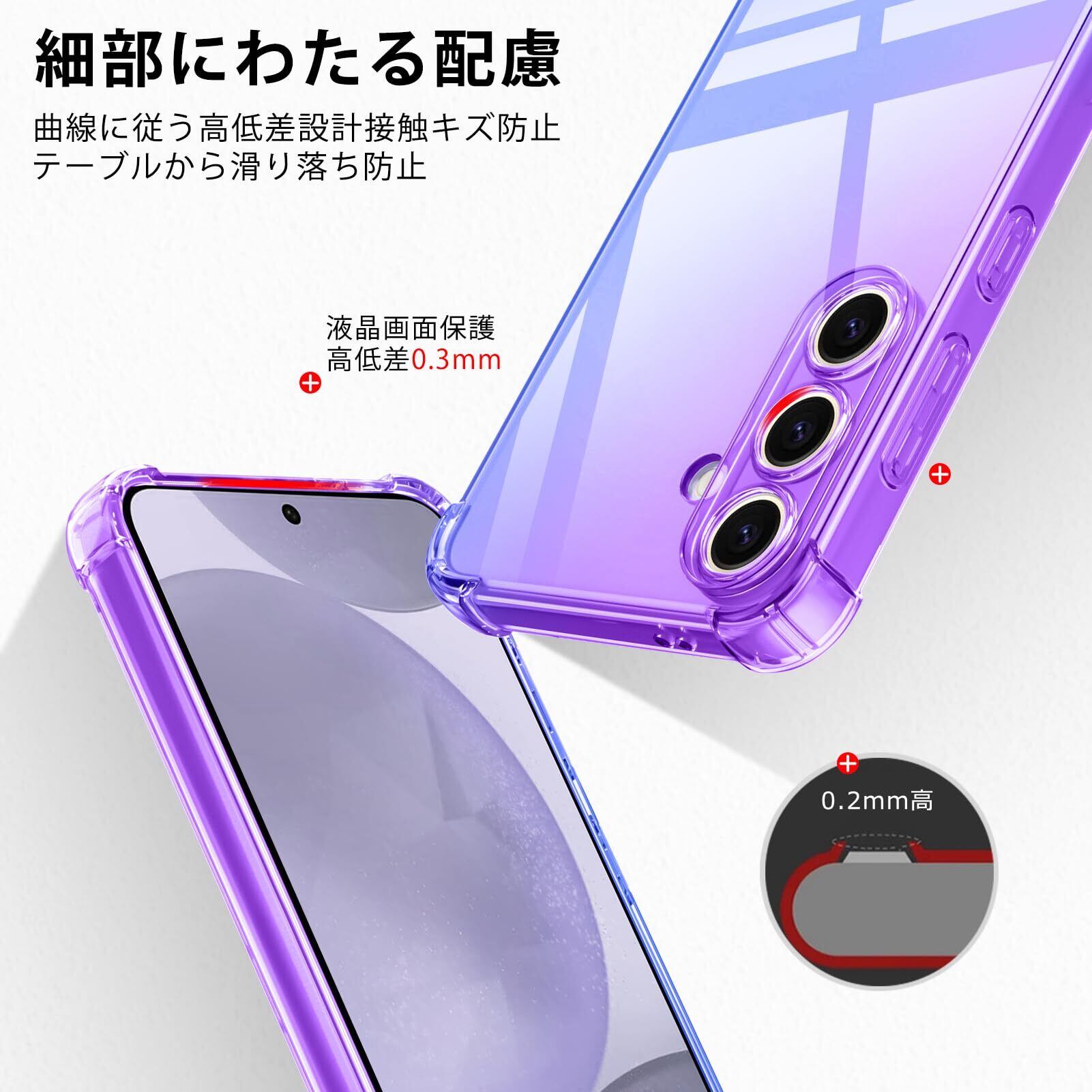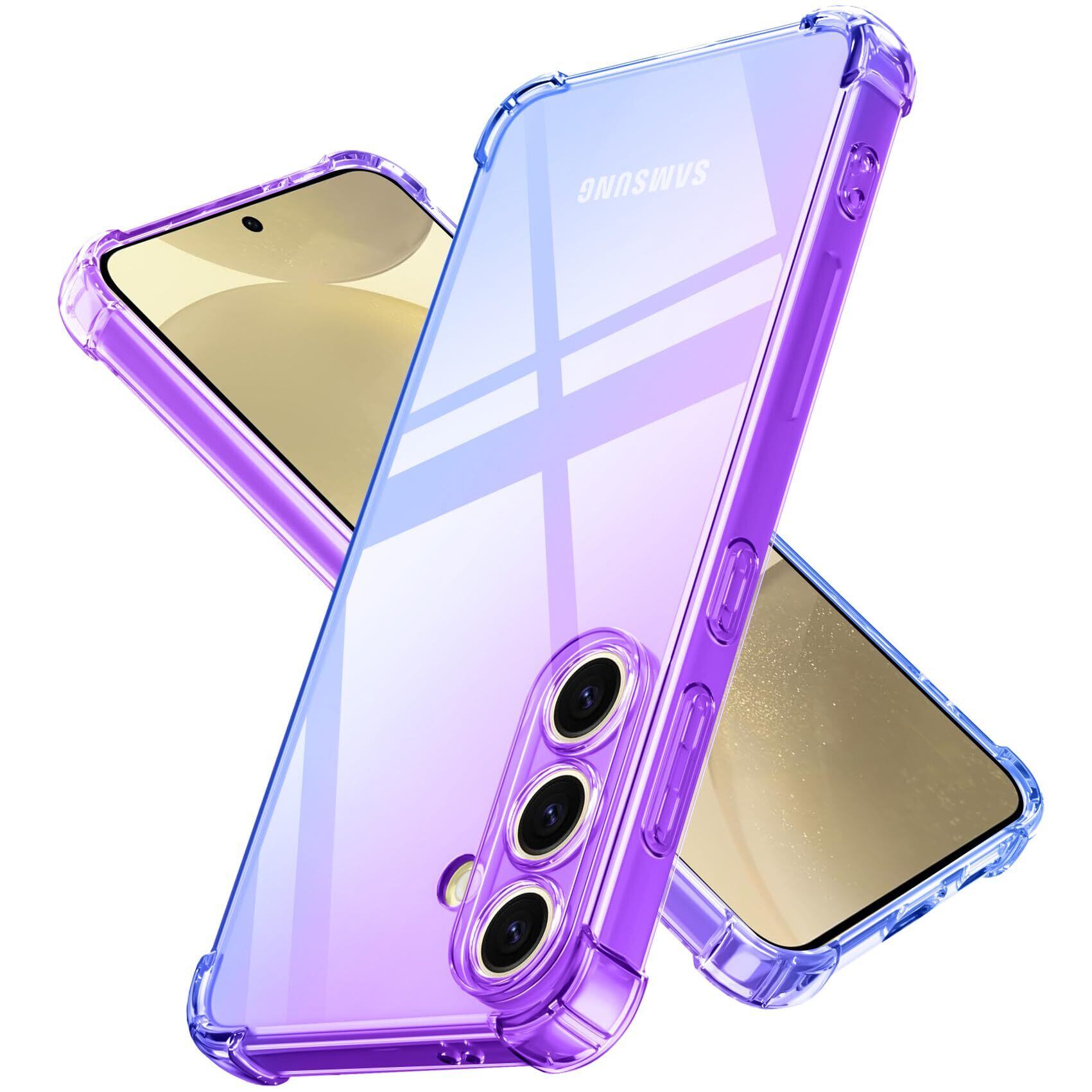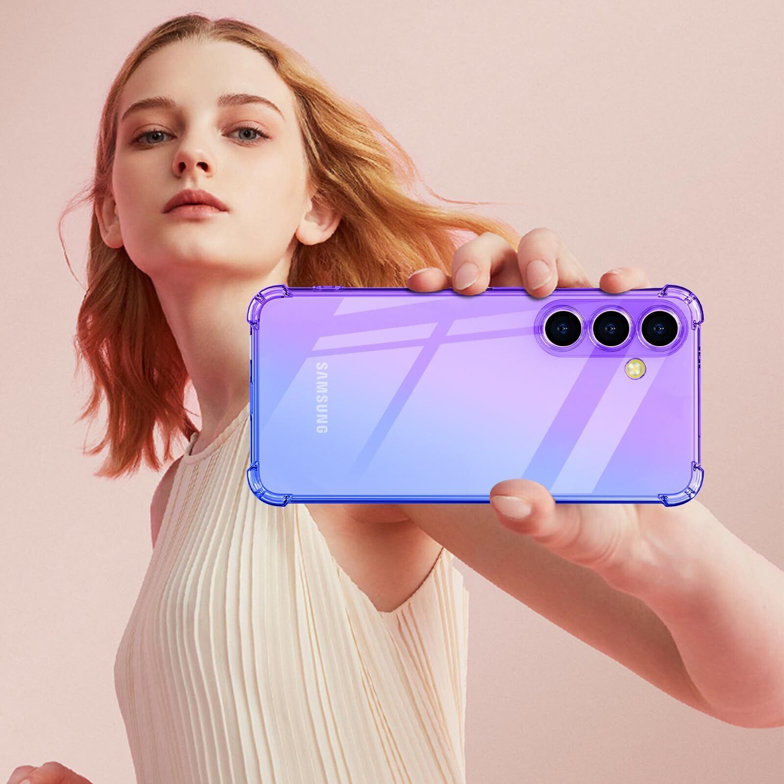 PNEWQNE Galaxy S25 用ケース グラデーション クリア 全面保護カバー 耐衝撃 衝撃吸収 tpu 耐震 ソフト軽量 薄型 落下防止 米軍MIL規格 透明 耐久 黄変防止 指紋防止 滑り防止 ワイヤレス充電に対応 人気 携帯カバー 紫+青 WY67-46