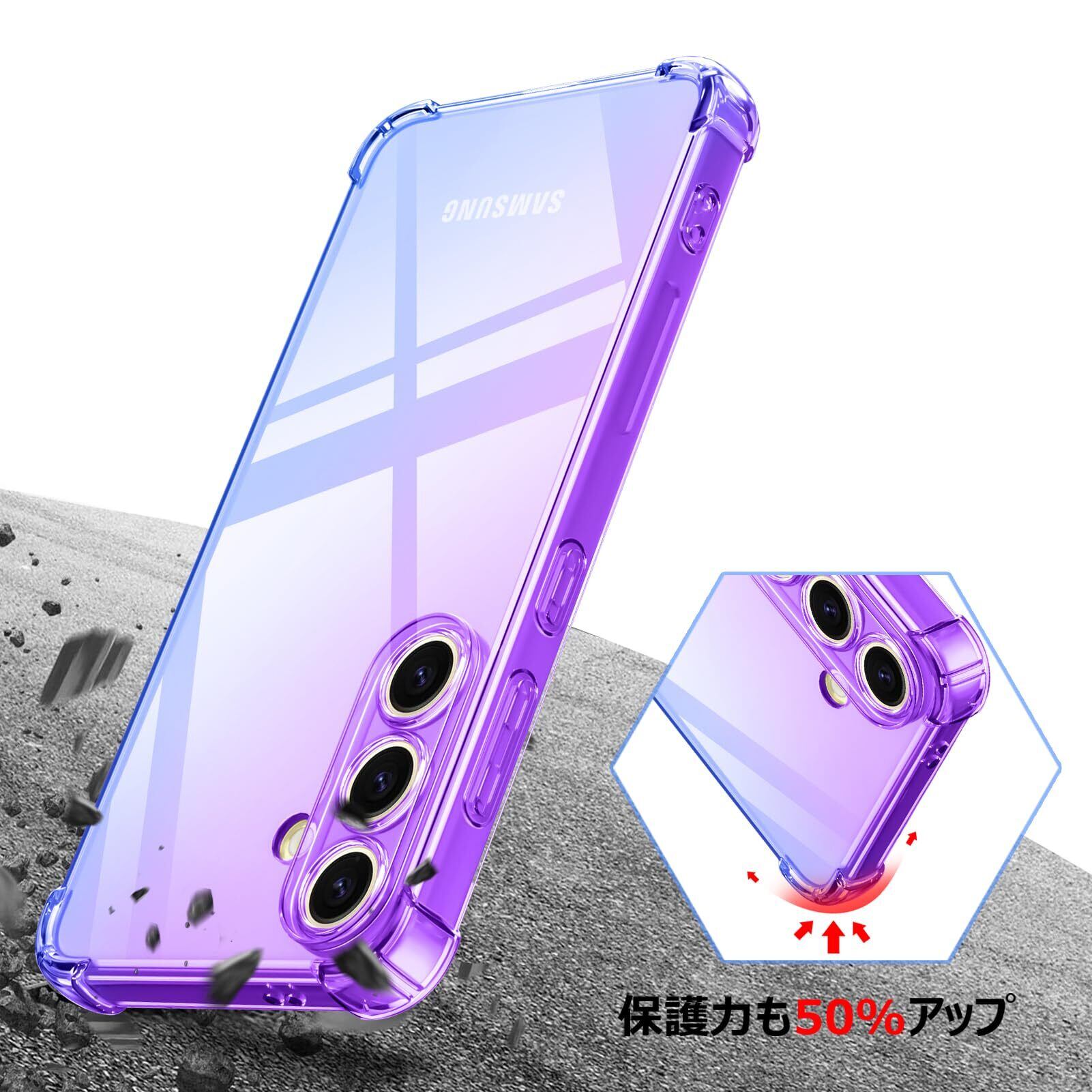 【在庫のみ】PNEWQNE Galaxy S25 用ケース グラデーション クリア 全面保護カバー 耐衝撃 衝撃吸収 tpu 耐震 ソフト軽量 薄型 落下防止 米軍MIL規格 透明 耐久 黄変防止 指紋防止 滑り防止 ワイヤレス充電に対応 人気 携帯カバー 紫+青 WY67-46