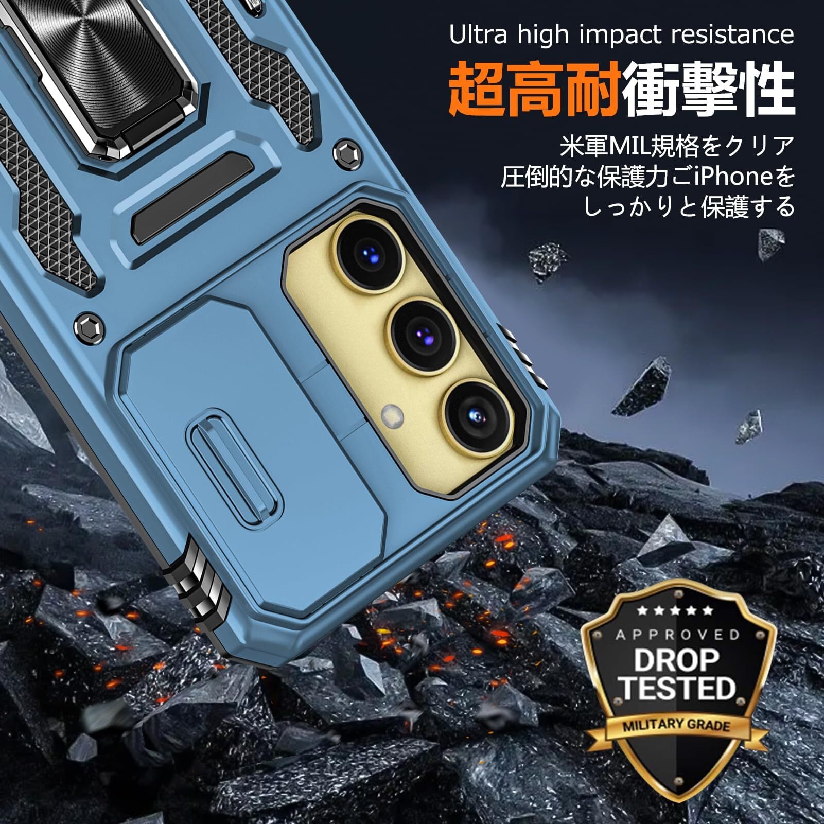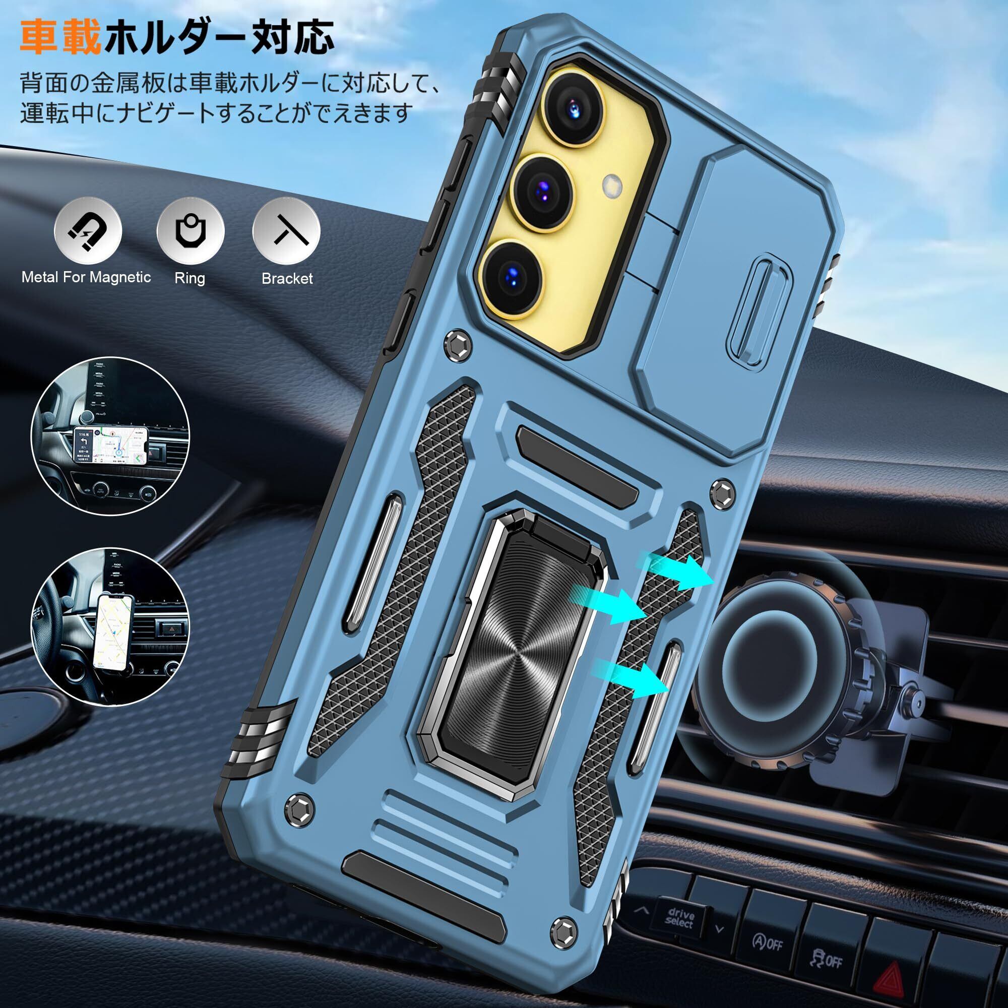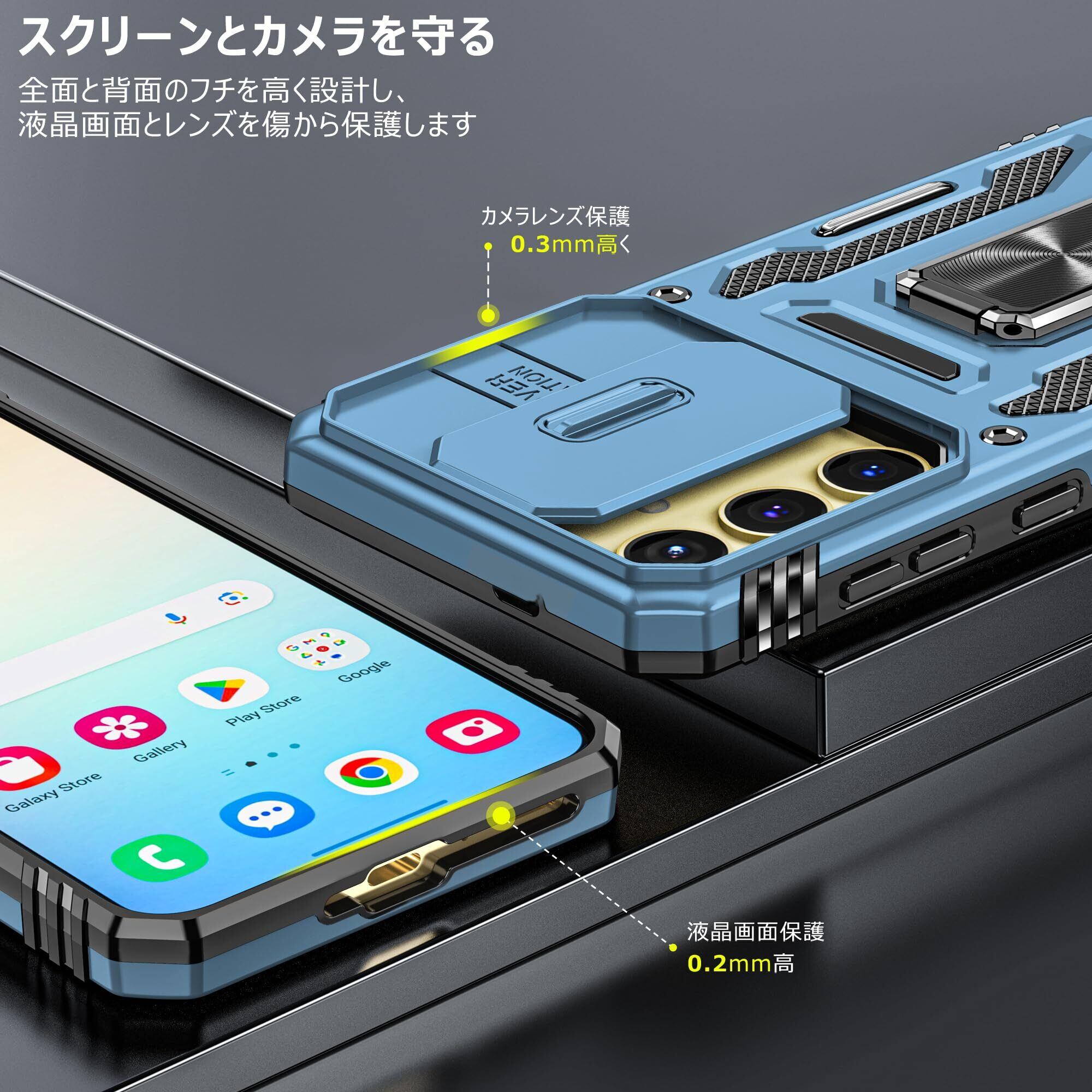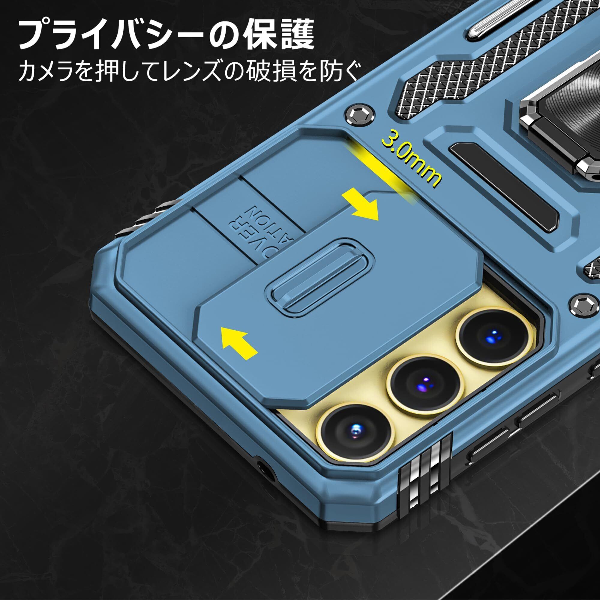 Galaxy S25 用 ケース リング付き 衝撃吸収 耐衝撃 スタンド機能 米軍MIL規格 ギャラクシーs25 用ケース 全面保護 360°回転 滑り落ちにくい 人気 おしゃれ 携帯カバー 浅青 WY95-156