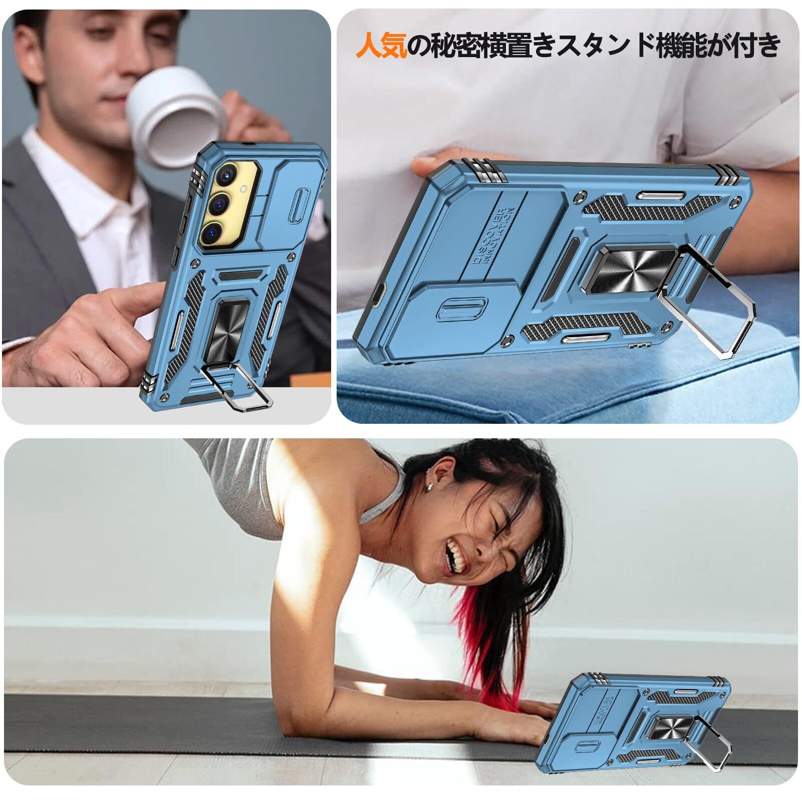 【特価処分】Galaxy S25 用 ケース リング付き 衝撃吸収 耐衝撃 スタンド機能 米軍MIL規格 ギャラクシーs25 用ケース 全面保護 360°回転 滑り落ちにくい 人気 おしゃれ 携帯カバー 浅青 WY95-156