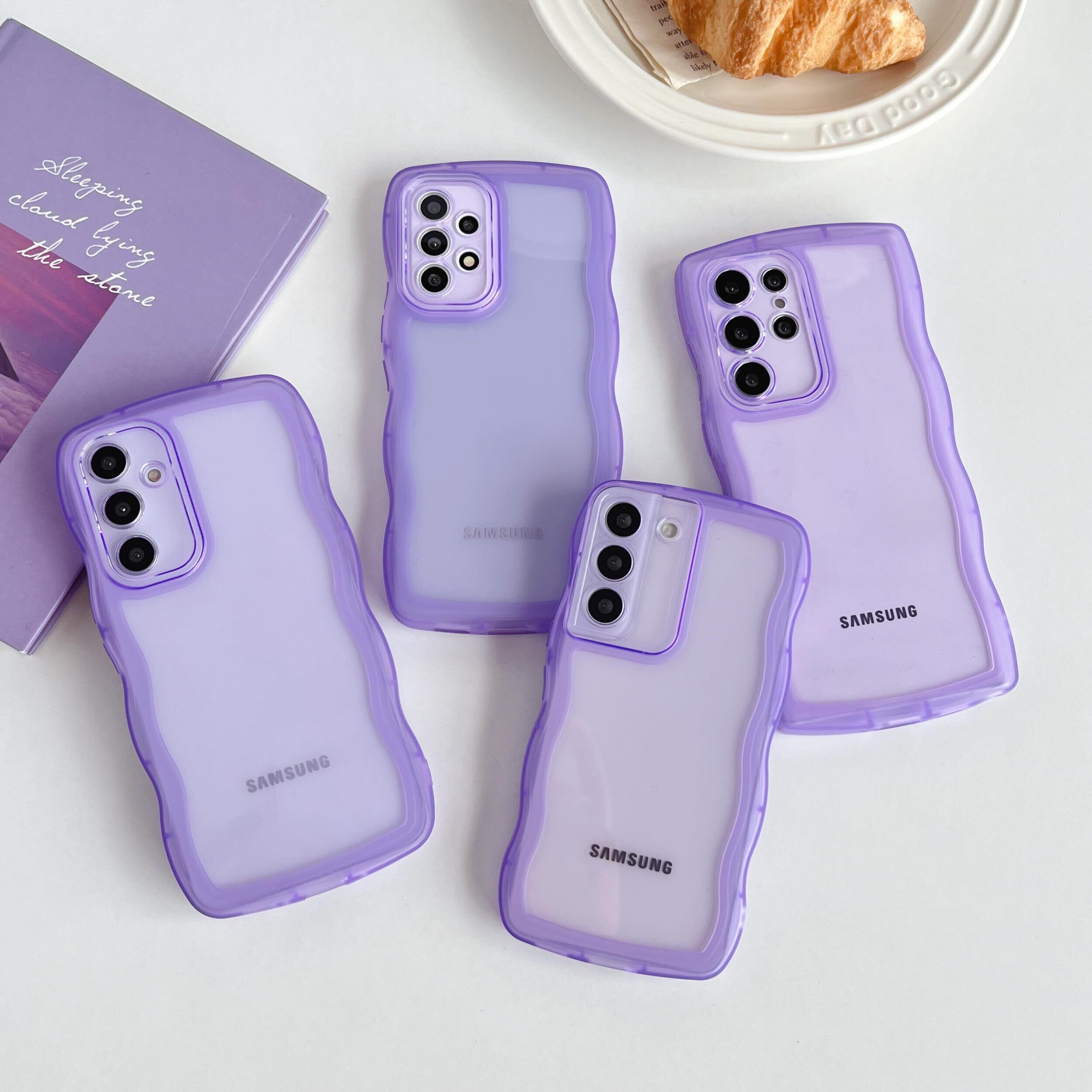 ZTOFERA Samsung Galaxy S25 Ultra ケース用、クリア透明可愛いうねうね波状フレームおしゃれデザイン、ソフトTPU滑り止め傷防止耐衝撃性の電話カバーSamsung S25 Ultra 5Gケース用、紫