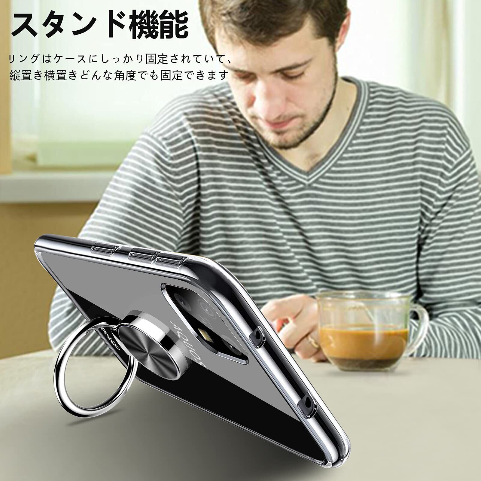 【リングの機能&スタンド機能】ブラケットは360°回転できます、180角度調節可能、滑りにくくて持ちやすい、安定的なグリップが特徴です。一指着る式で、指がリングに通り抜け、片手で携帯を操作でき、落下防止します。ケースを横置きにするとスタンド機能になり、持たず動画鑑賞などを楽しむことができます、または、垂直画面で小説を読むことができます。