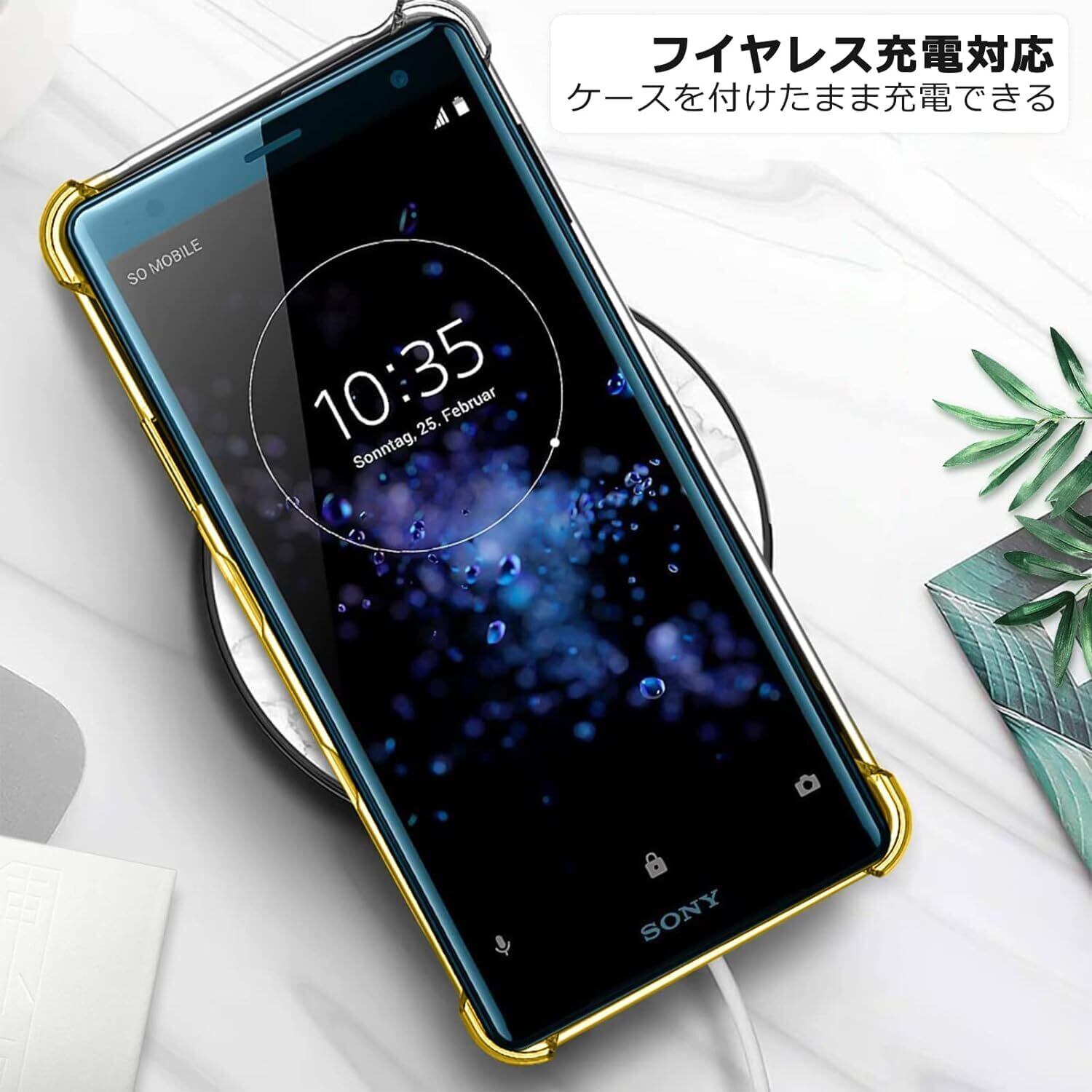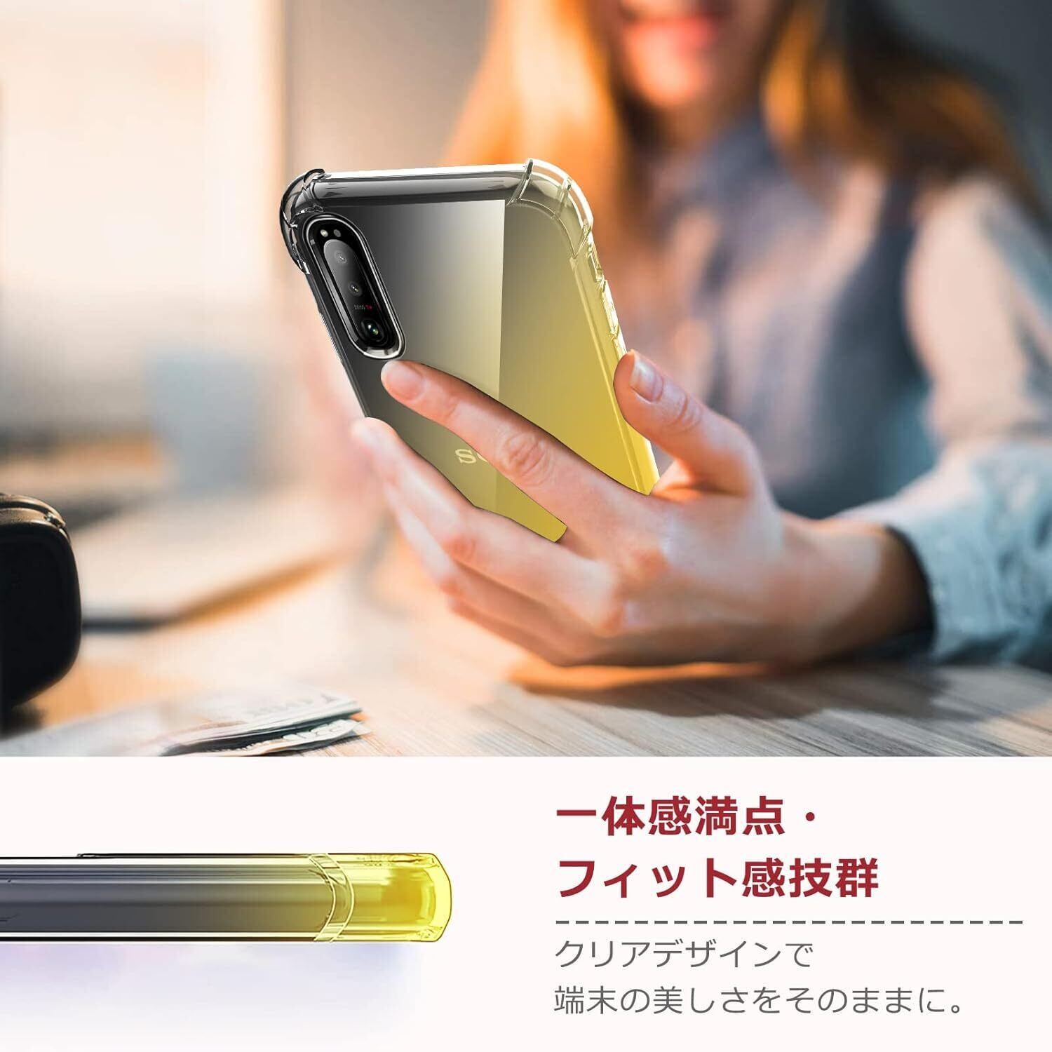 Xperia Ace ケース 耐衝撃 クリアSO-02L カバー クリア TPU 薄型 軽量 滑り止め 黄変防止 柔軟 Qi充電 衝撃吸収 指紋防止 米軍MIL規格取得 ワイヤレス充電に対応 カメラ保護 カバー 黑+金 331-Xperia Ace-08