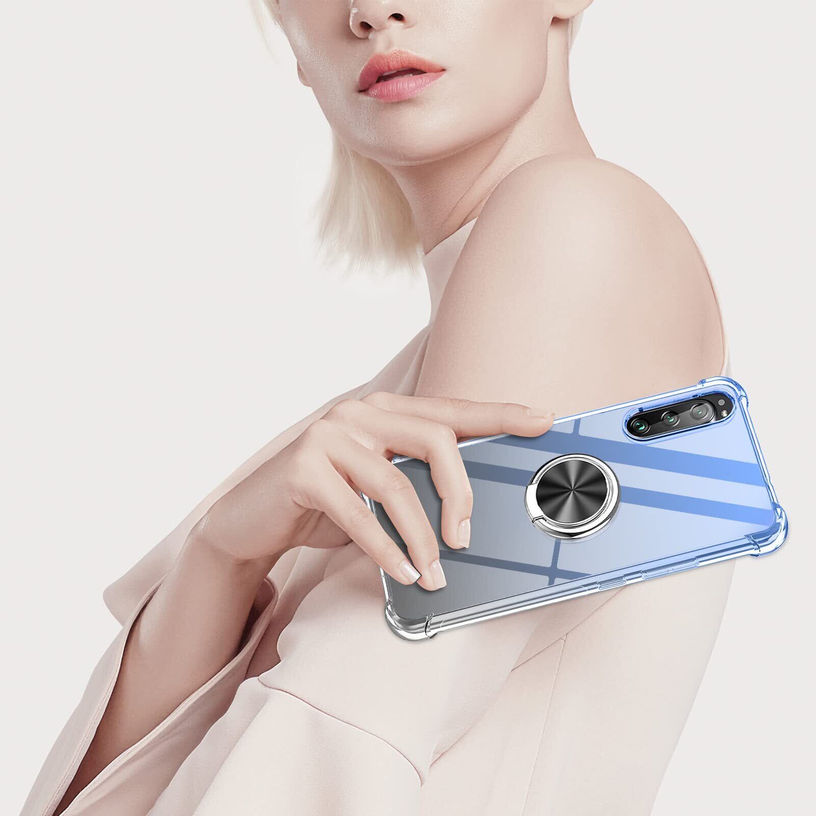 YDIHIHO Xperia ACE III ケース リング付き クリア 薄型 グラデーション色 ケース SOG08 SO-53C A203SO ケース 軽量 tpu 耐衝撃 スマホケース 透明 米軍MIL規格取得 おしゃれ 黄変防止防塵一体型 人気 車載ホルダー エクスペリア ACE3 携帯カバー ブルーブラック MD-SXZH-025-03