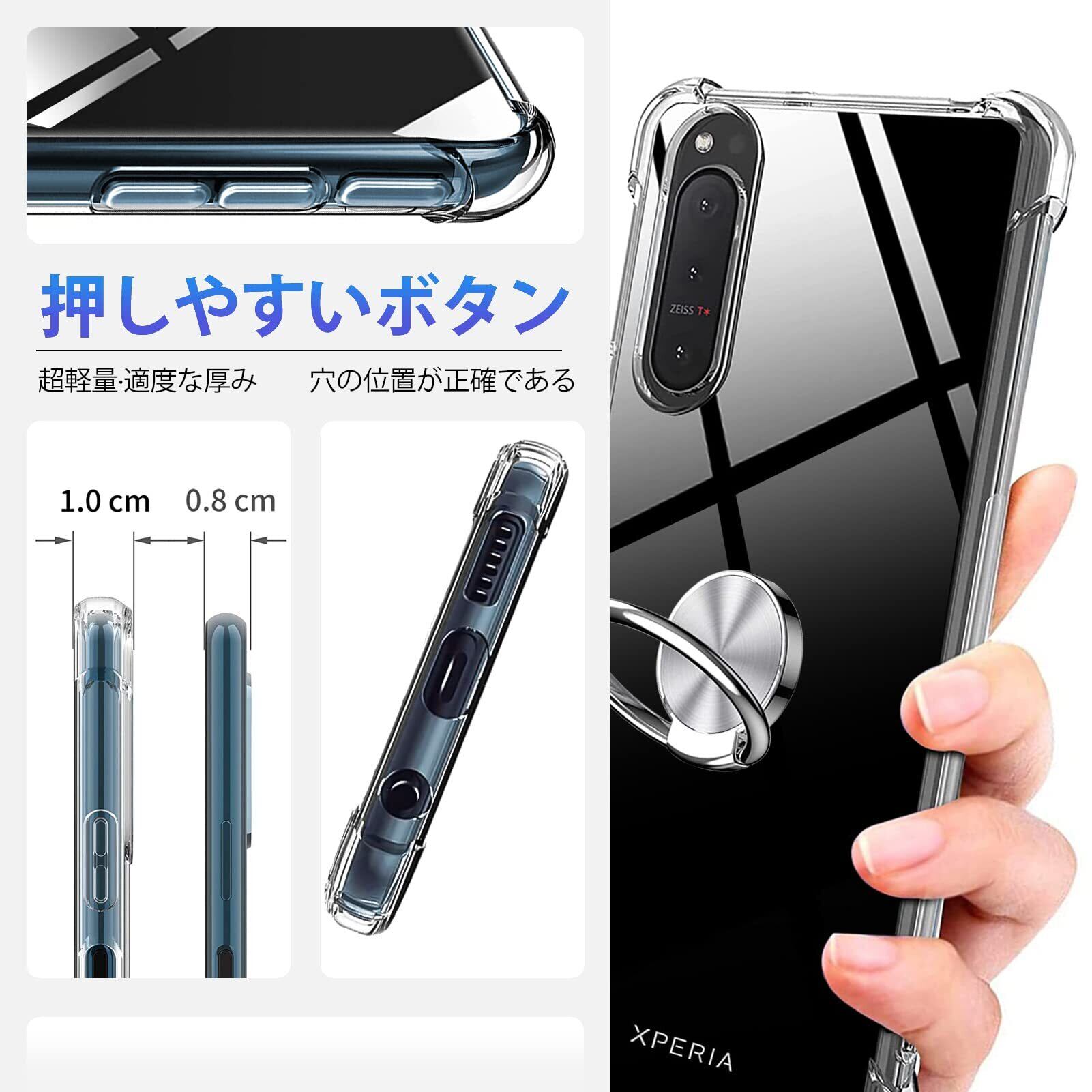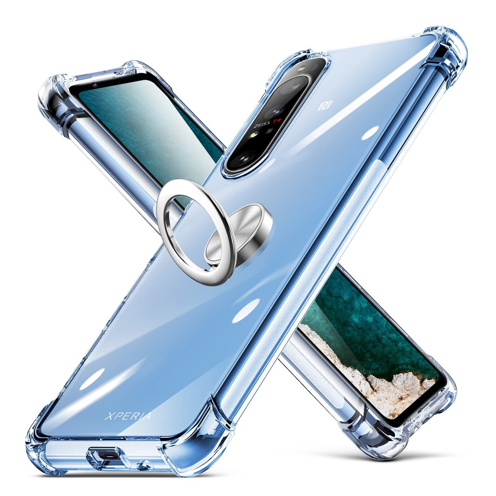 MNYWDSQ モバイルフォン ケース Xperia 1 II リング クリア 透明 TPU 耐衝撃 スタンド機能 車載ホルダー 指紋防止 防塵 滑り防止 透明 D634-Xperia 1 II-05