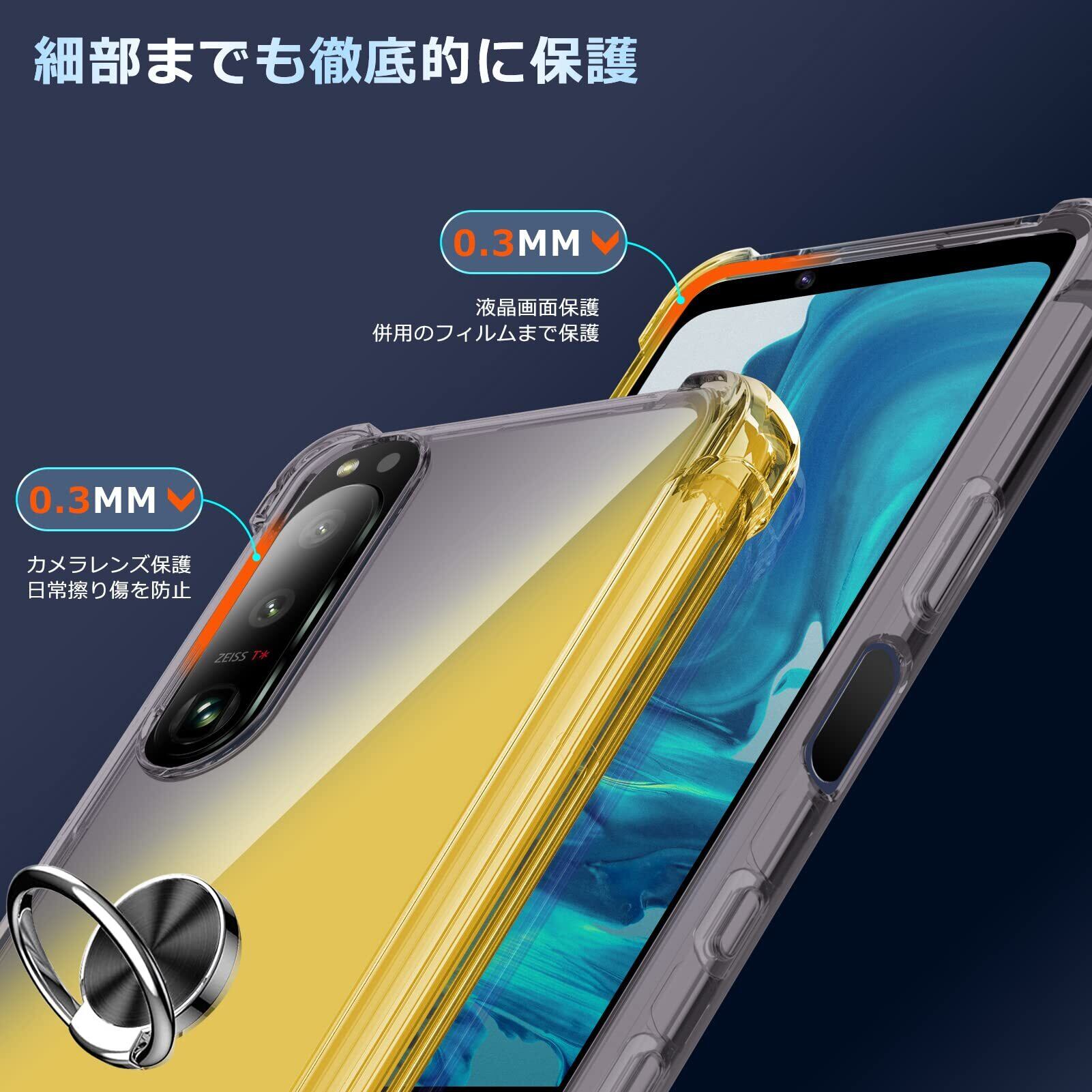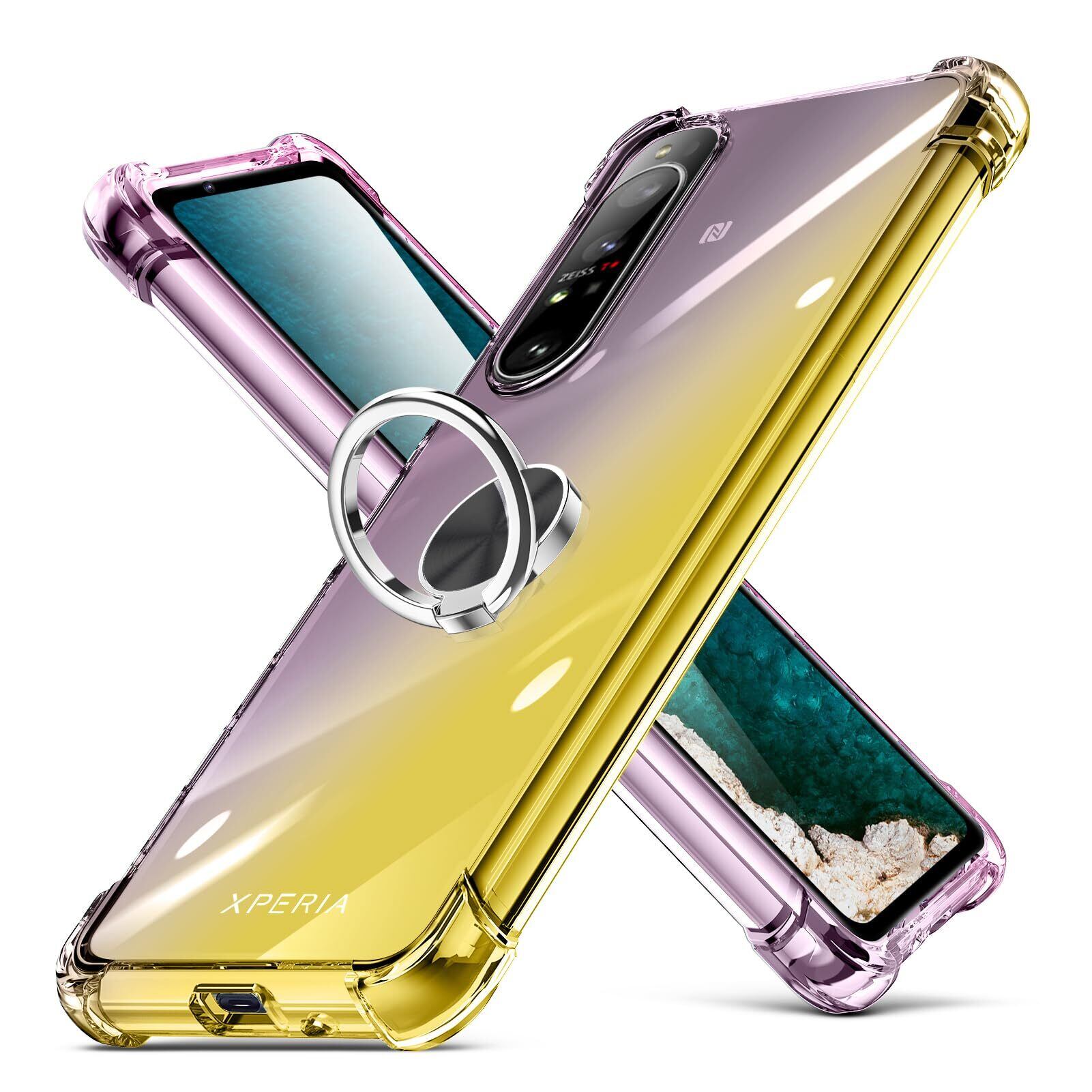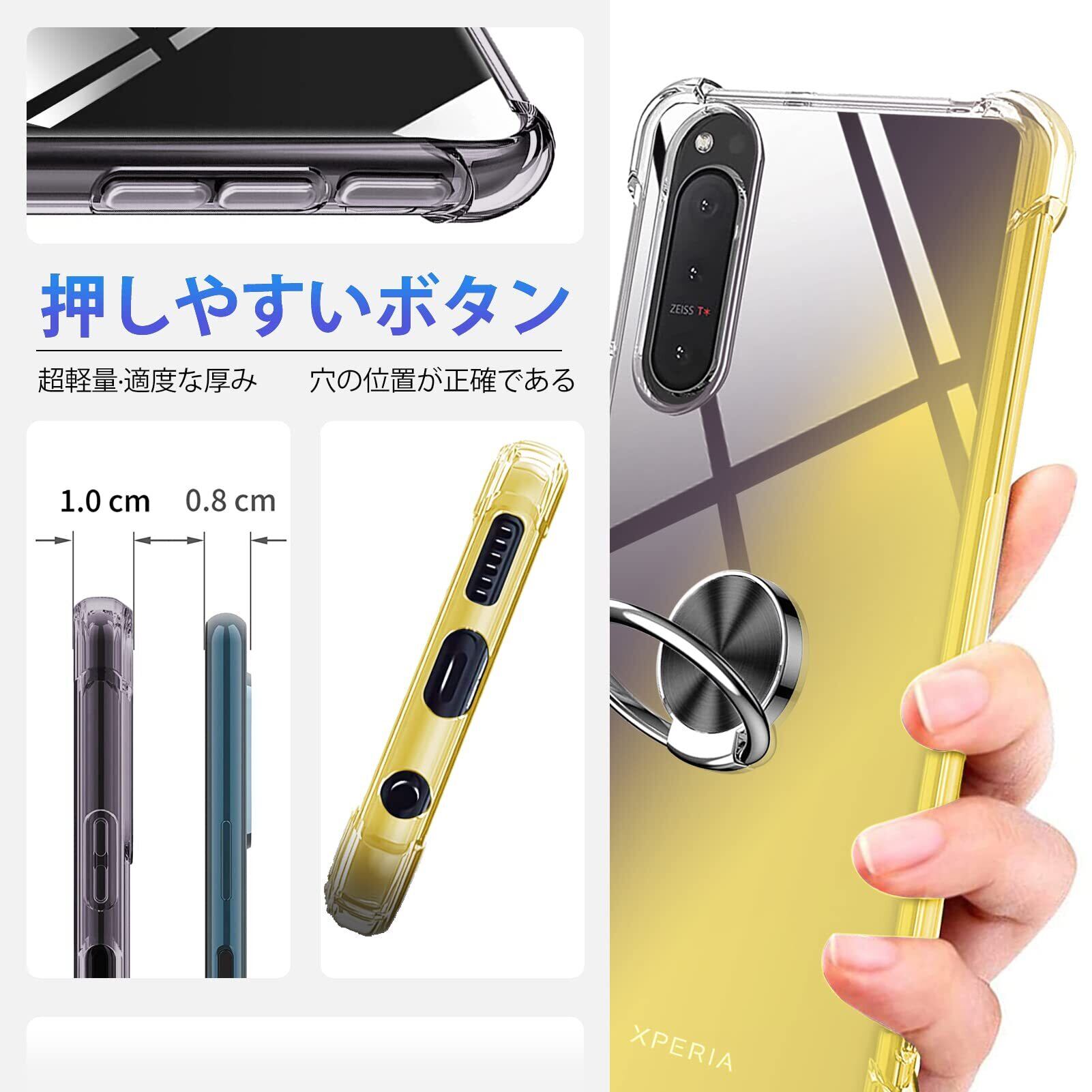 xperia 1 ii ケース 透明 クリア リング TPU SOG03 SO-51B カバー 耐衝撃 クリア 透明 TPU スリム 薄型 グラデーション スタンド機能 車載ホルダー 黄変防止 指紋防止 防塵 滑り防止 人気 携帯カバー 黑+金D634-Xperia 1 II-08