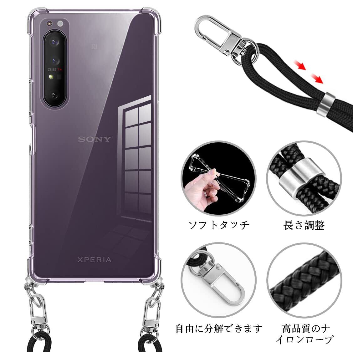 【新着特価】Sony Xperia 1 II ケース クリア ショルダー Xperia 1 II SO-51A スマホケース エクスペリア 1II カバー 肩掛け 斜めかけ SOG01 ショルダー クリア ケース 縄掛け 透明 TPU ストラップ付き 薄型軽量 1.5MM 取り外し可能 電波影響なし 指紋防止 落下防止 Qi急速充電対応 柔軟で変形しない
